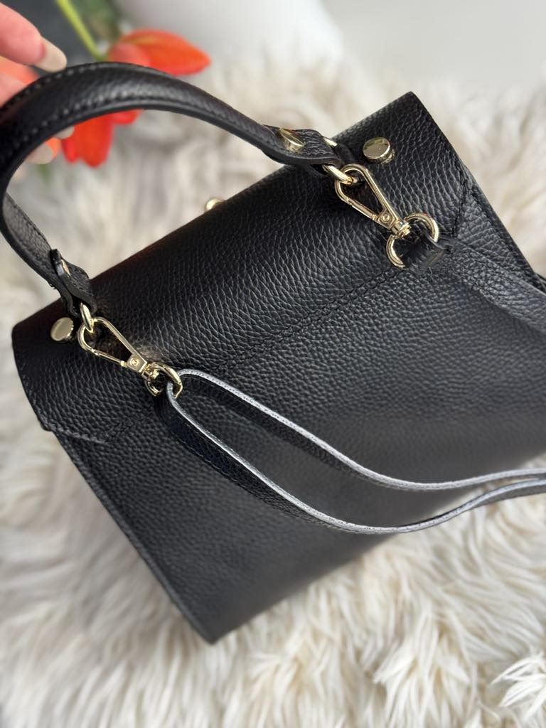 👉In partea superioară se inchide cu o clapeta din piele prevăzută cu un accesoriu metalic. In interior are un compartiment generos➕ un compartiment mai mic