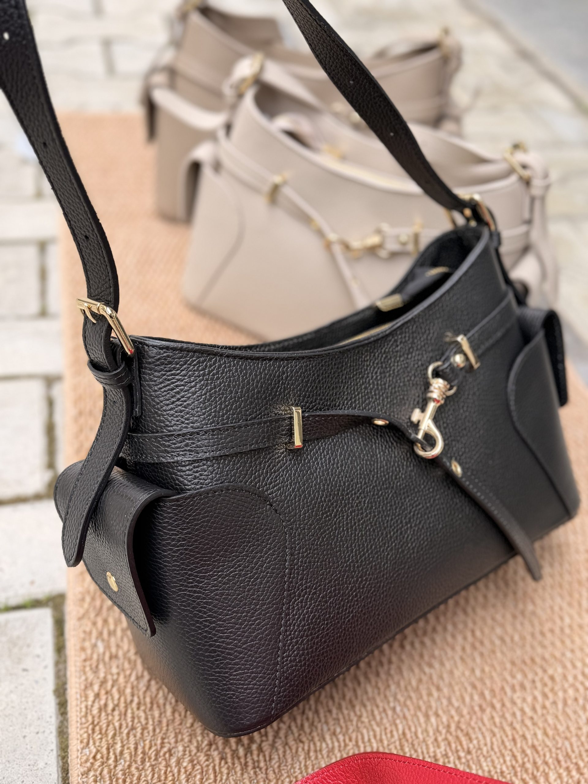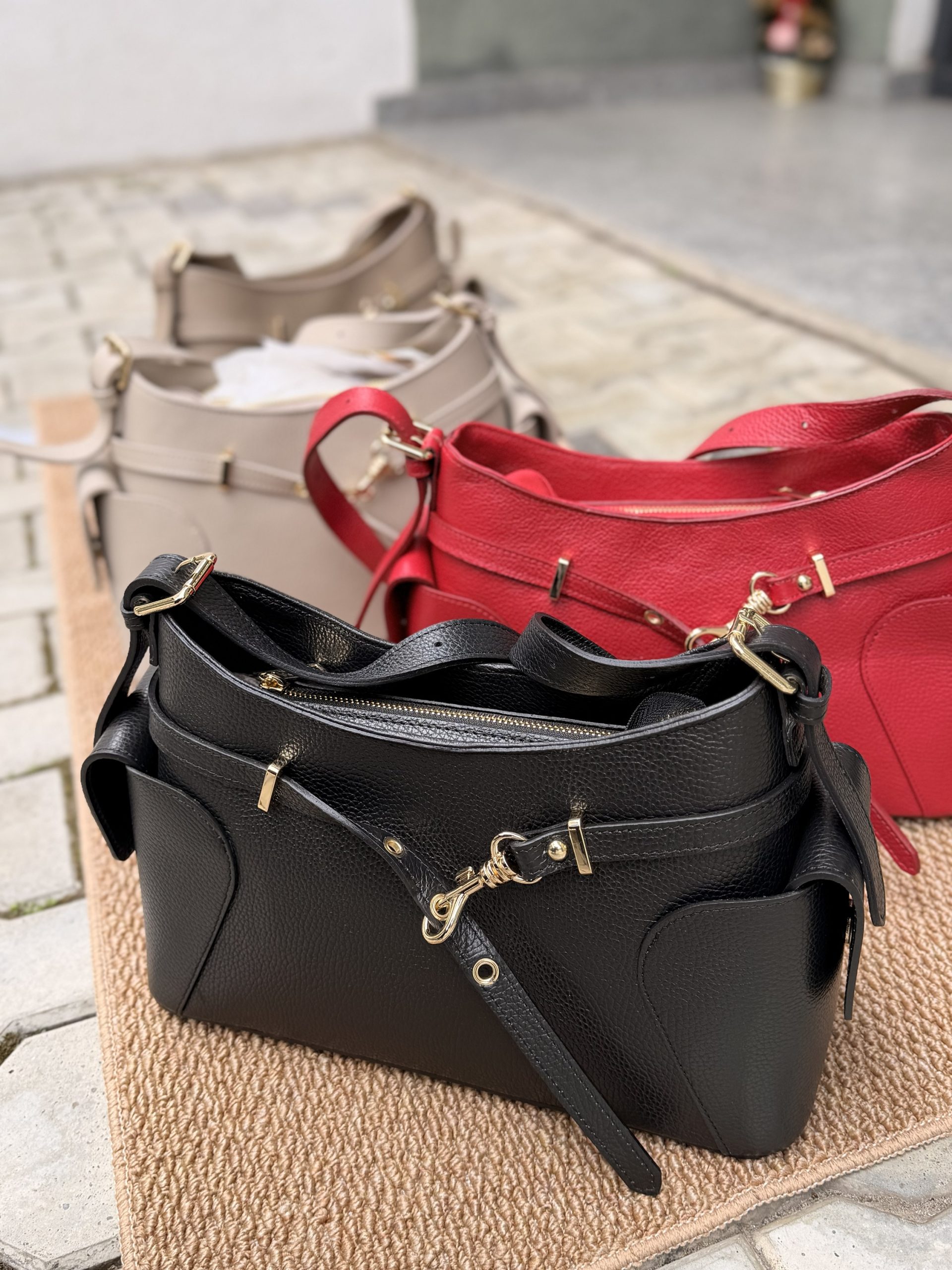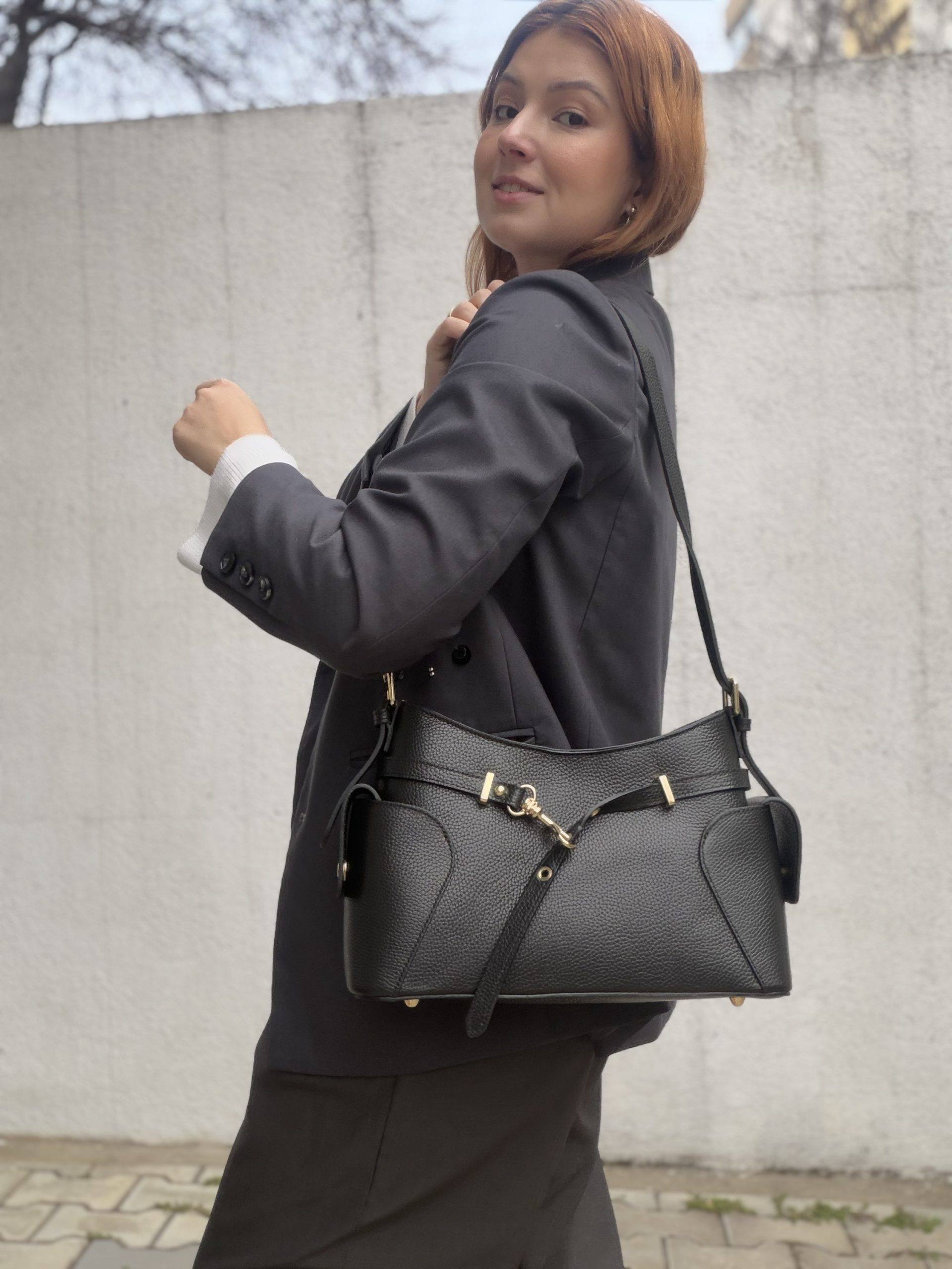 Geanta Serena este alegerea perfectă pentru un look rafinat și modern. Realizată din piele naturală de calitate, aceasta îmbină designul minimalist cu funcționalitatea, fiind ideală atât pentru ținutele de zi, cât și pentru cele casual-elegante.