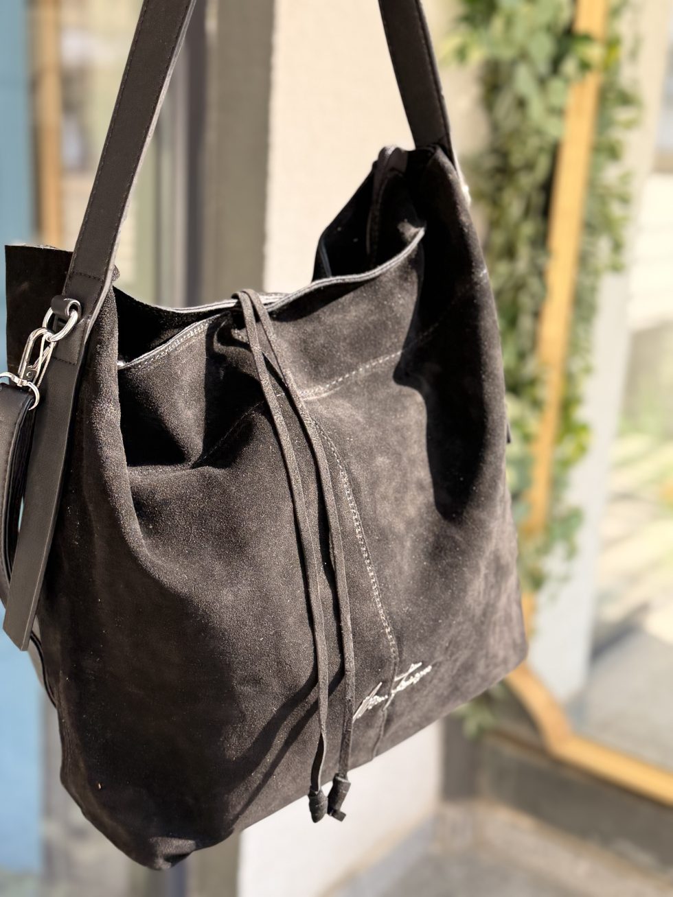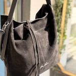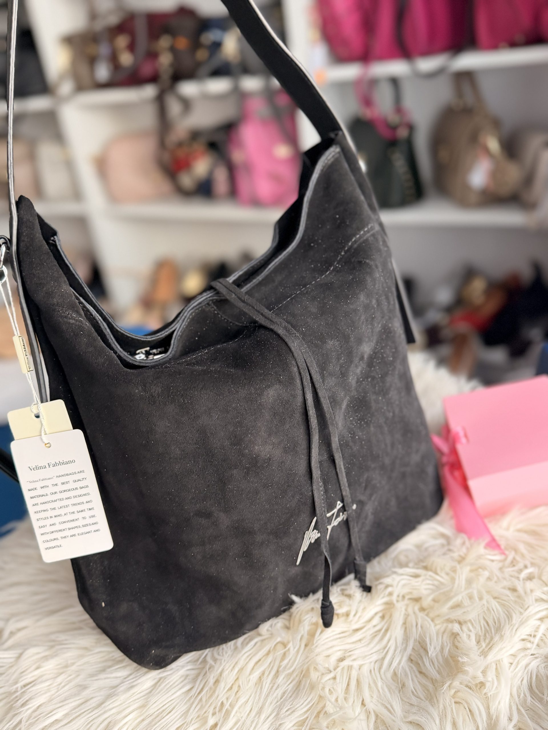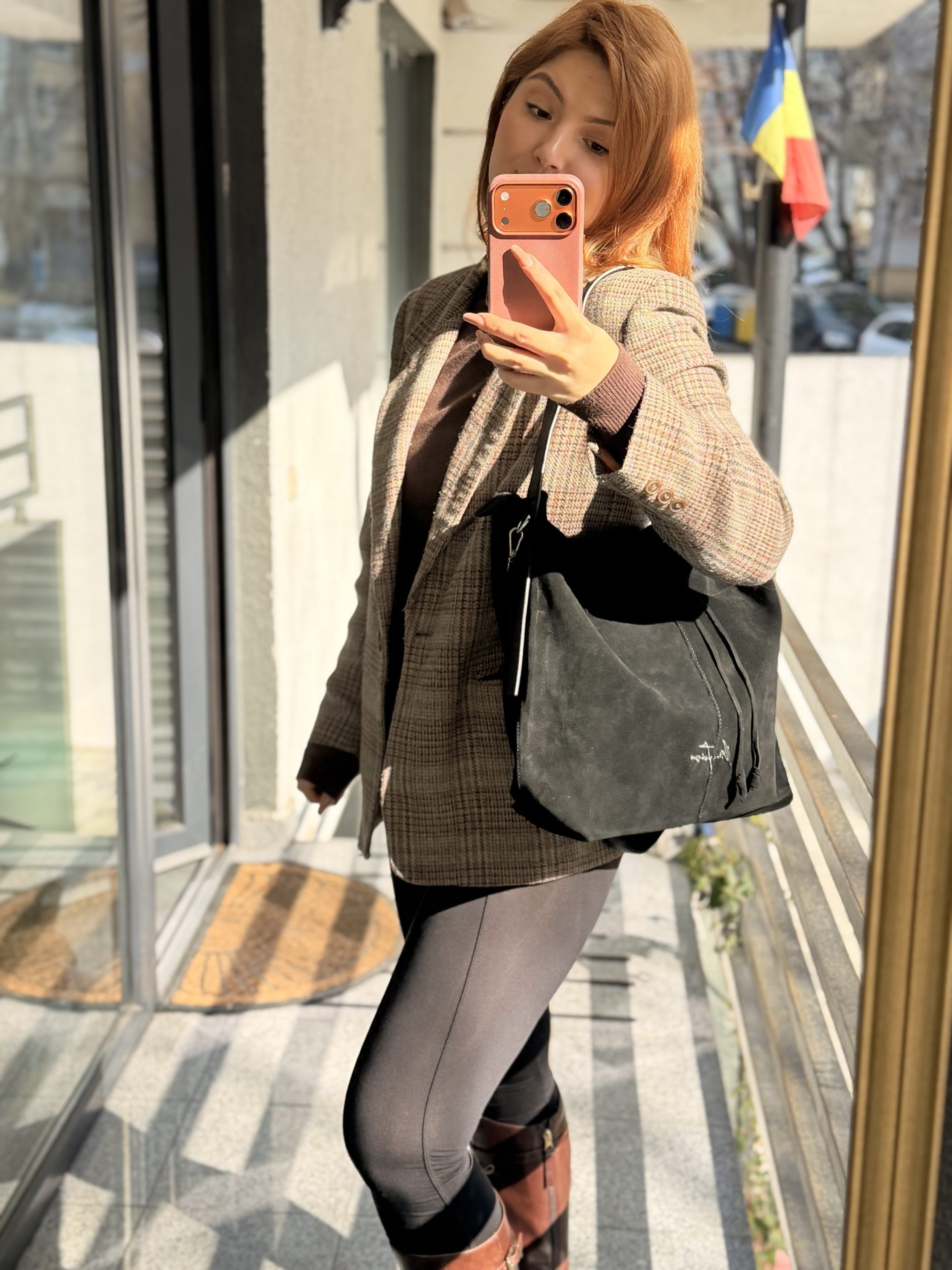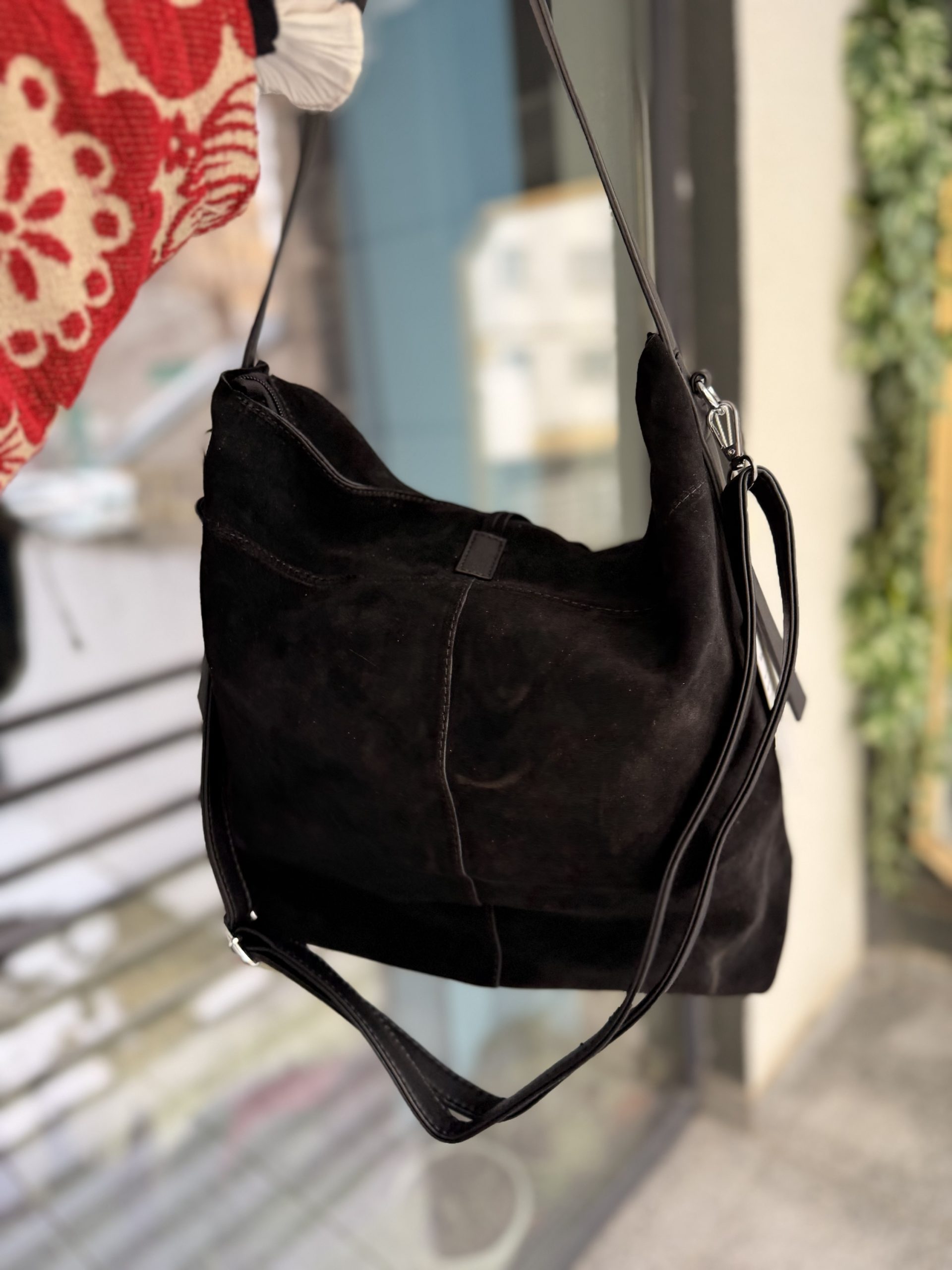 Geantă din piele întoarsă cu mâner și bareta din piele