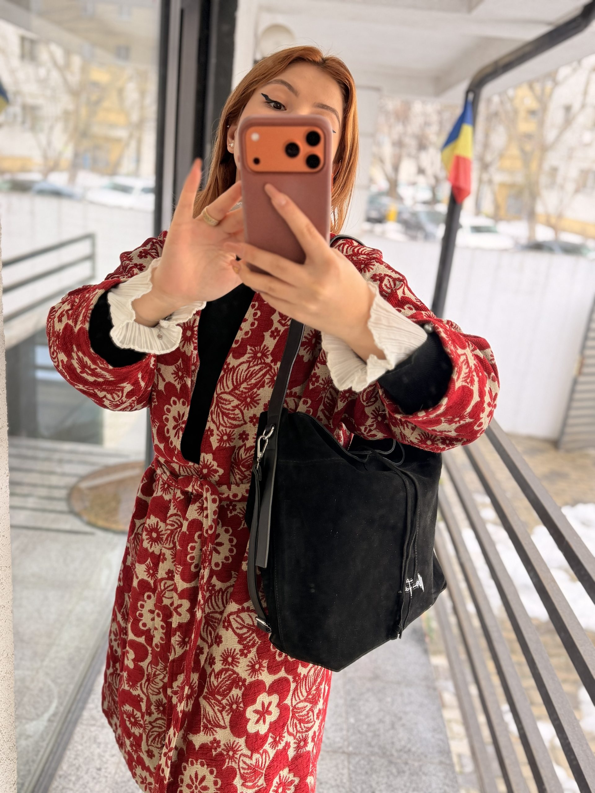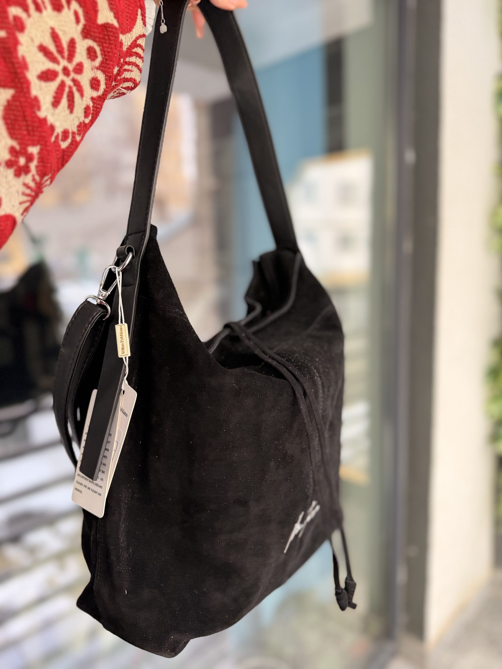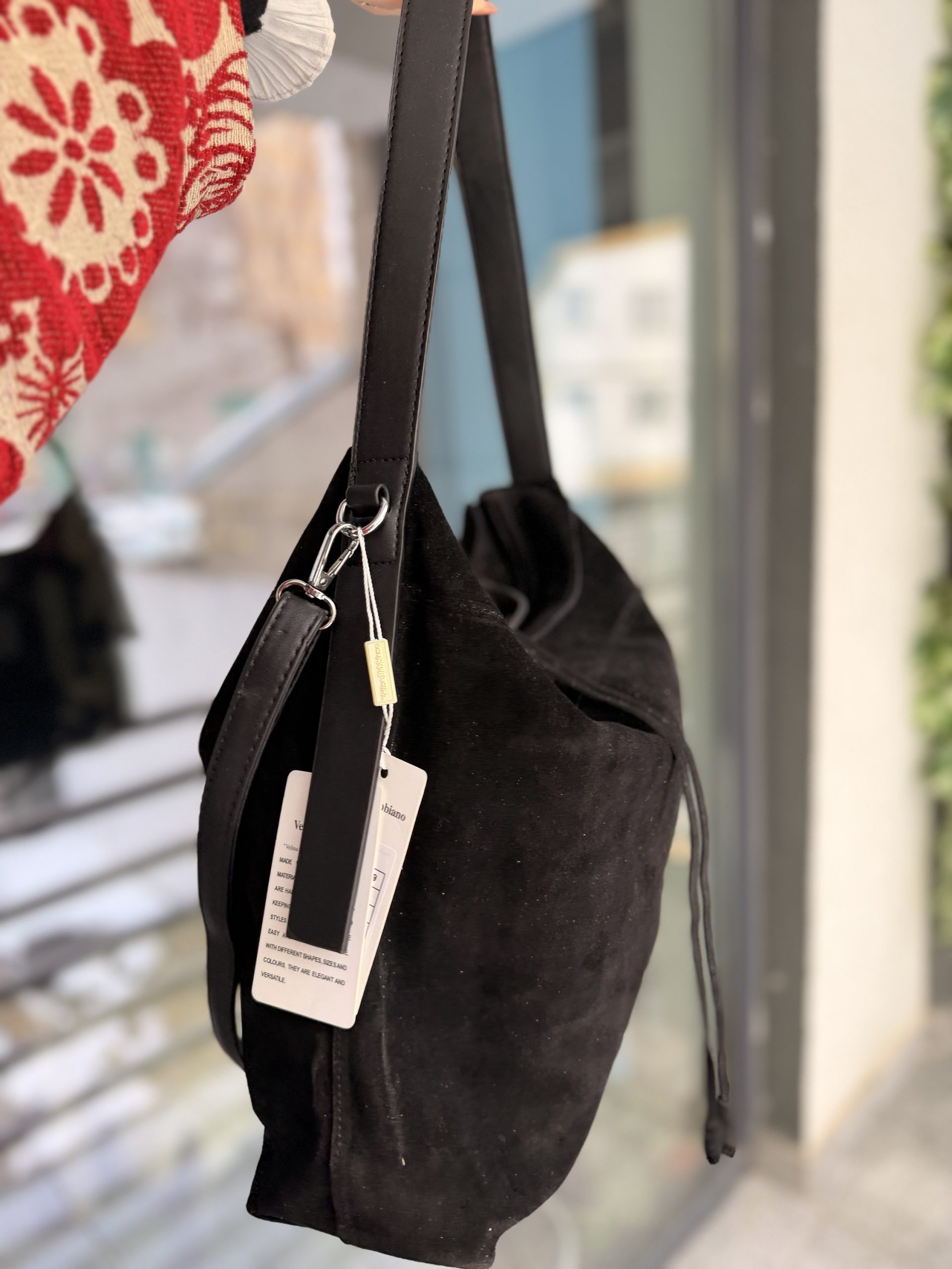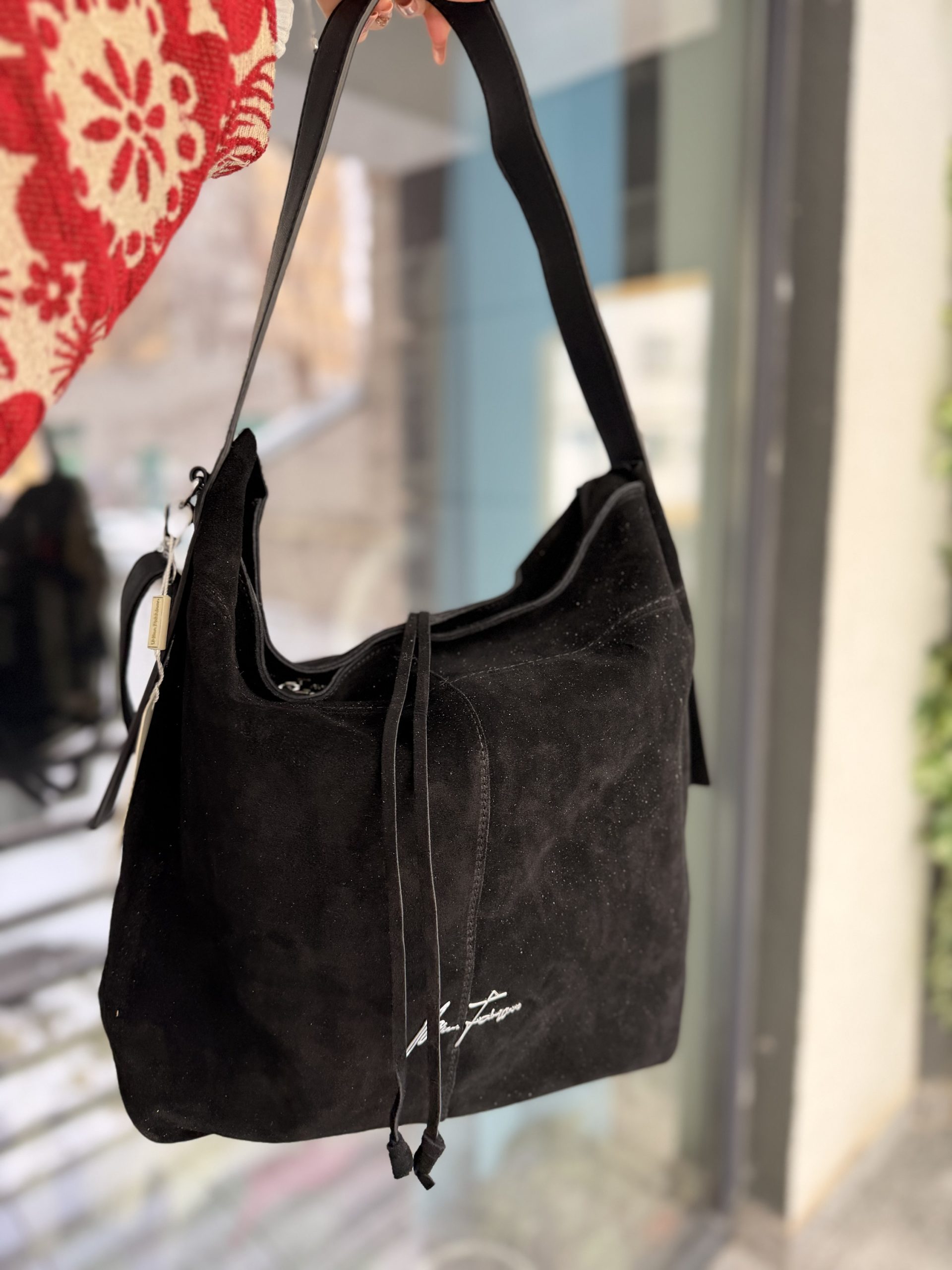 Geantă din piele întoarsă cu mâner și bareta din piele