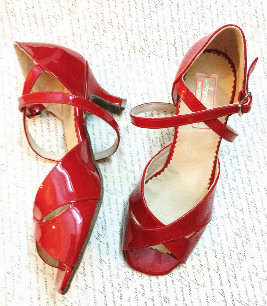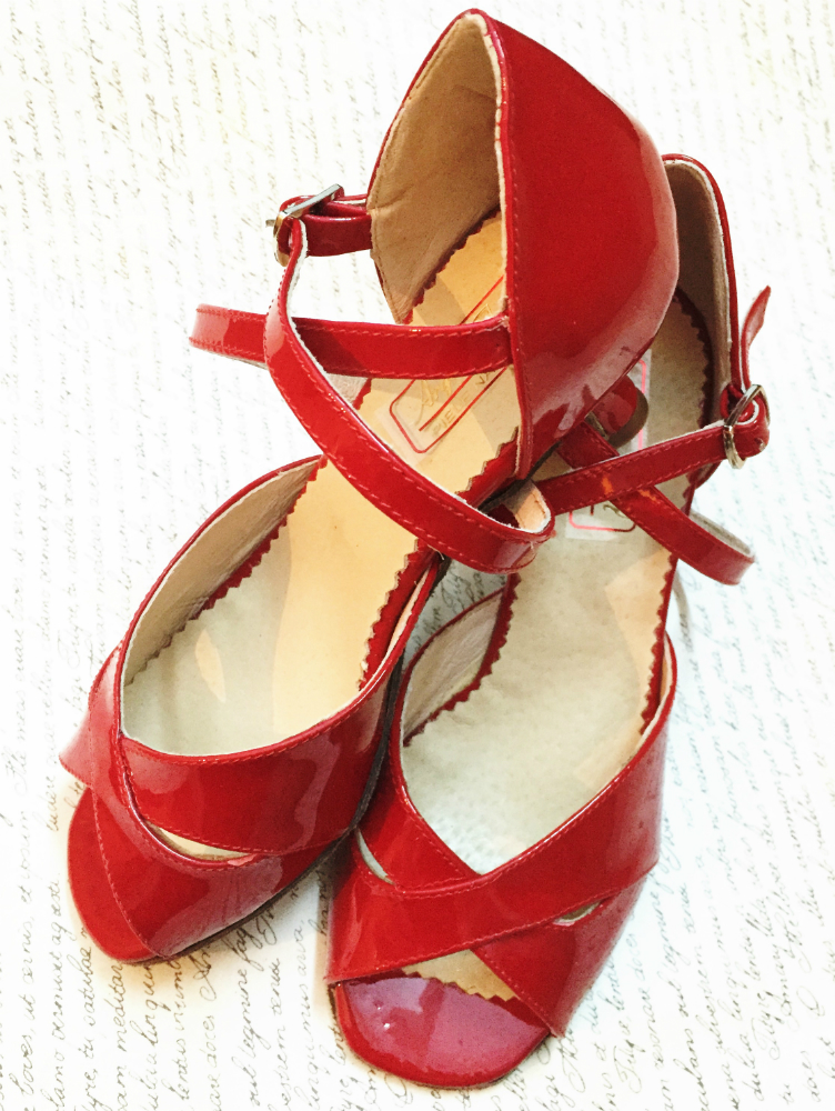 Sandale pentru dans cu toc de 4cm subtire imbracat si cu talpa construita si finisata manual special pentru dansuri.