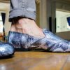 Pantofii ii putem confectiona din orice culoare sau combinatie de culori si din orice tip de piele (box, piele intoarsa, piele lacuita).