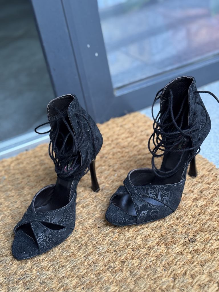 Sandale pentru dans cu toc de 9cm clepsidra si cu talpa construita si finisata manual special pentru dansuri.