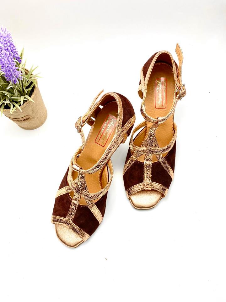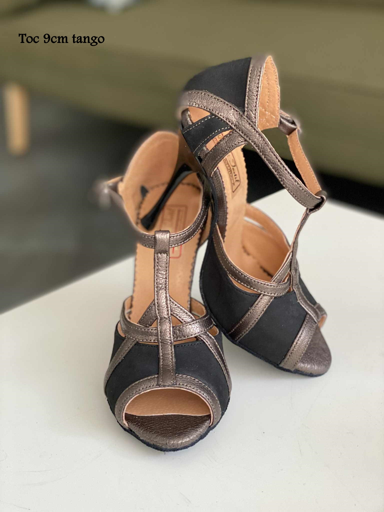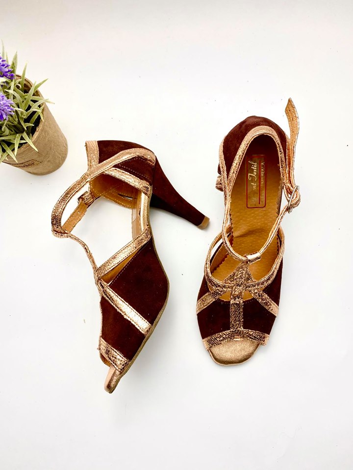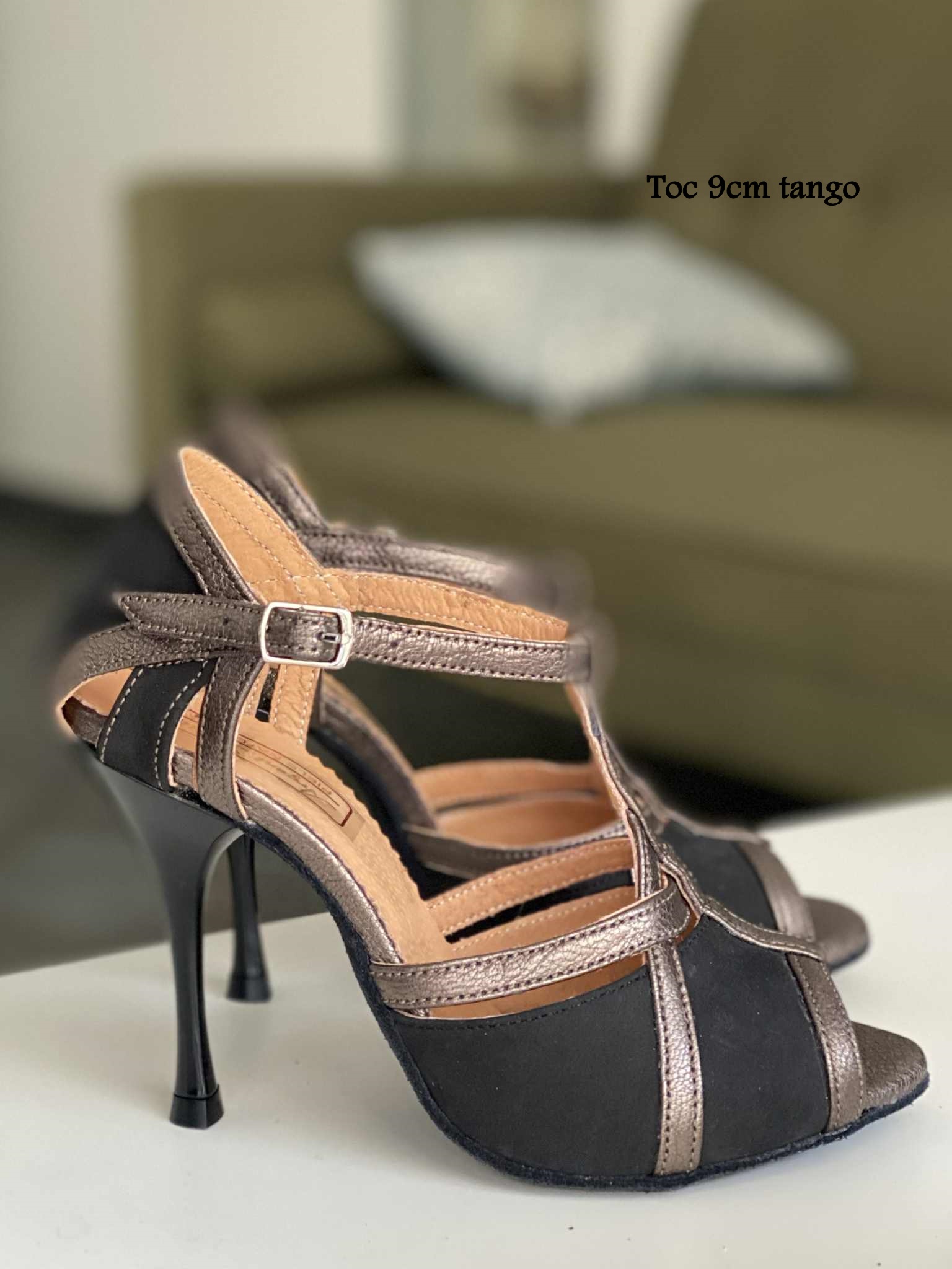 Sandale pentru dans cu toc de 9cm mediu imbracat si cu talpa construita si finisata manual special pentru dansuri.
