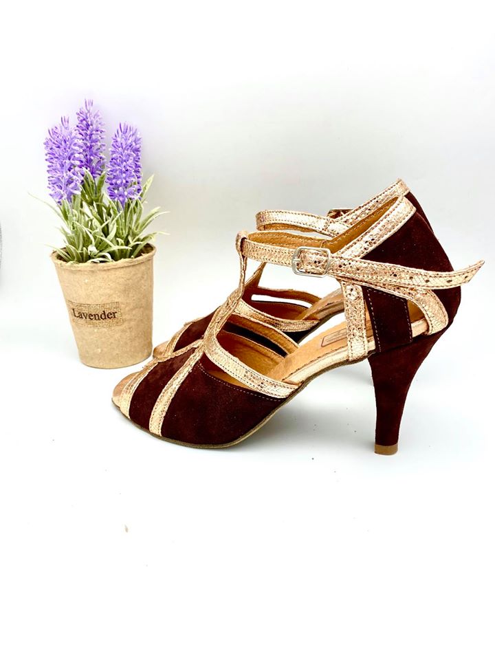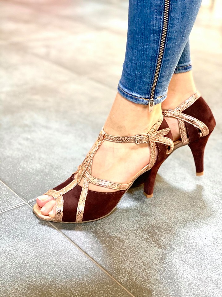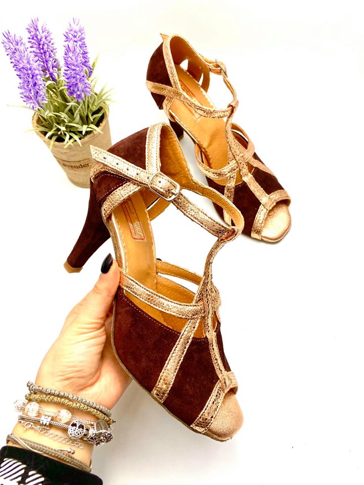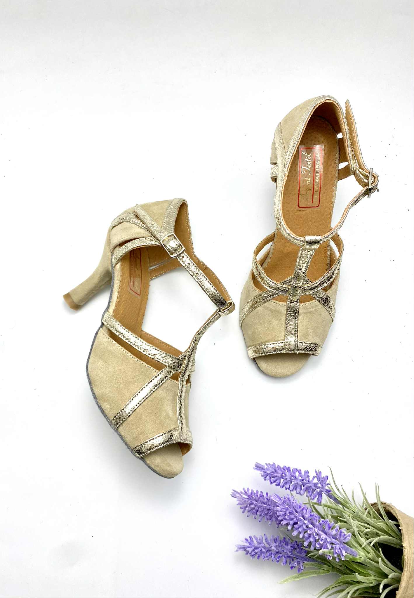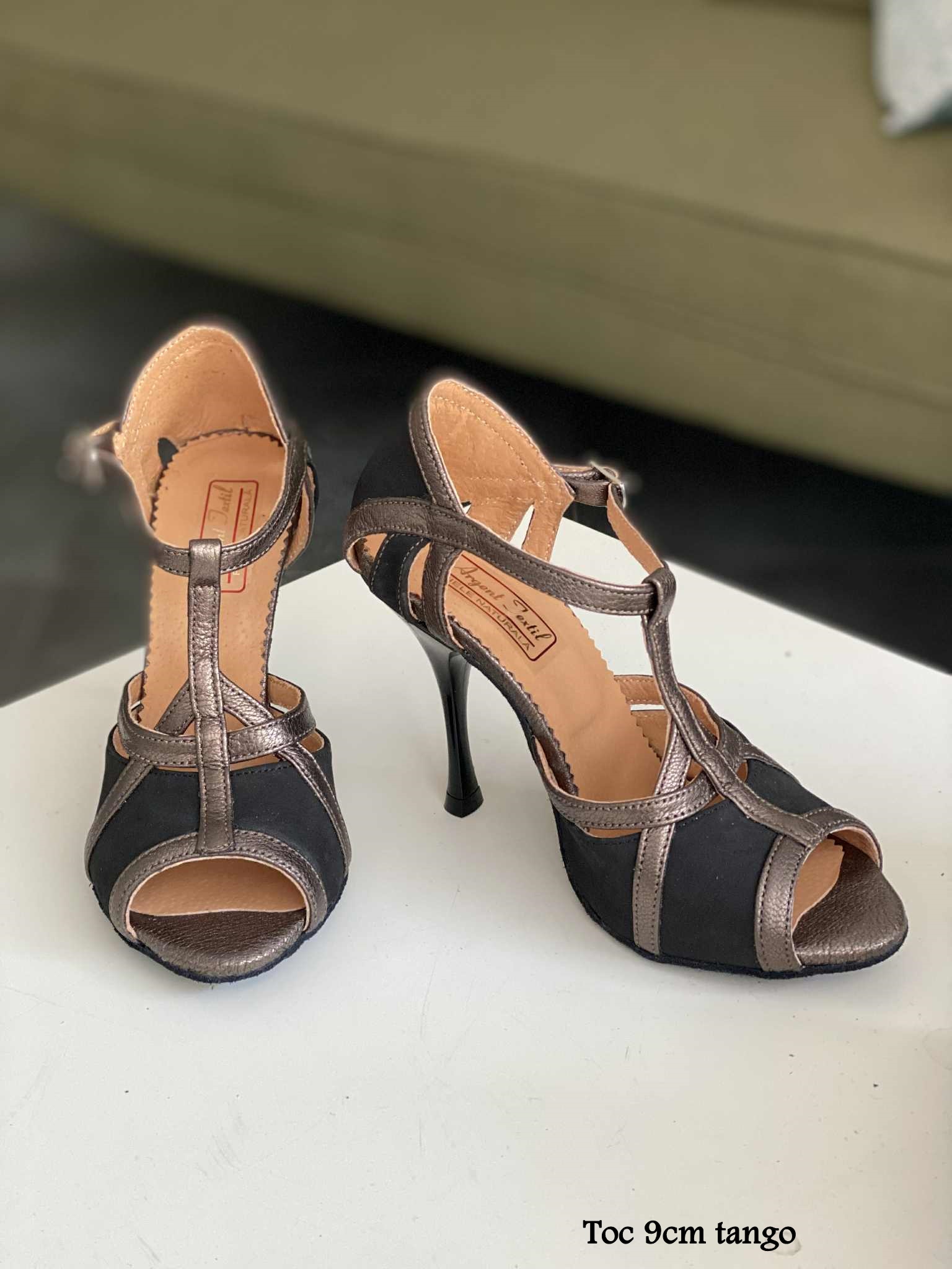 Sandale pentru dans cu toc de 9cm mediu imbracat si cu talpa construita si finisata manual special pentru dansuri.