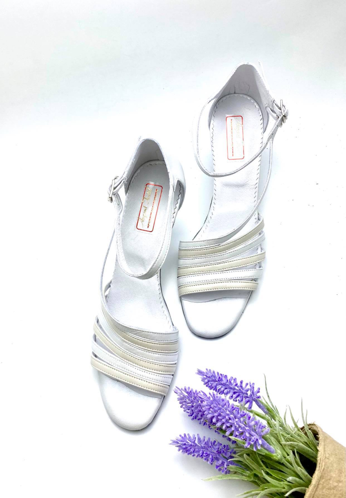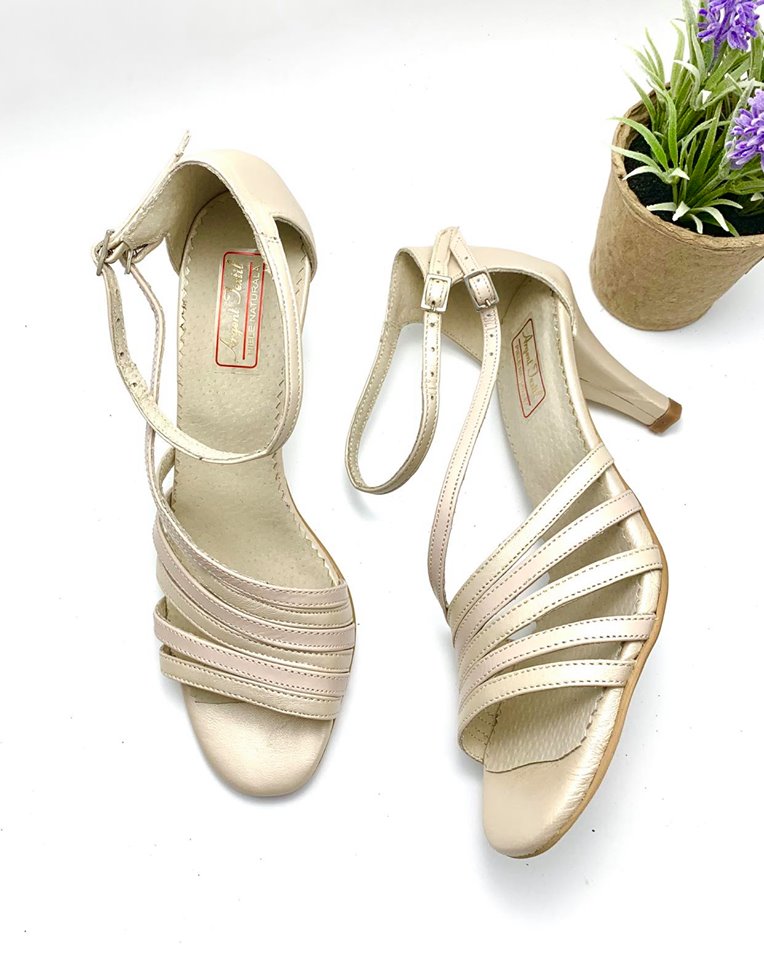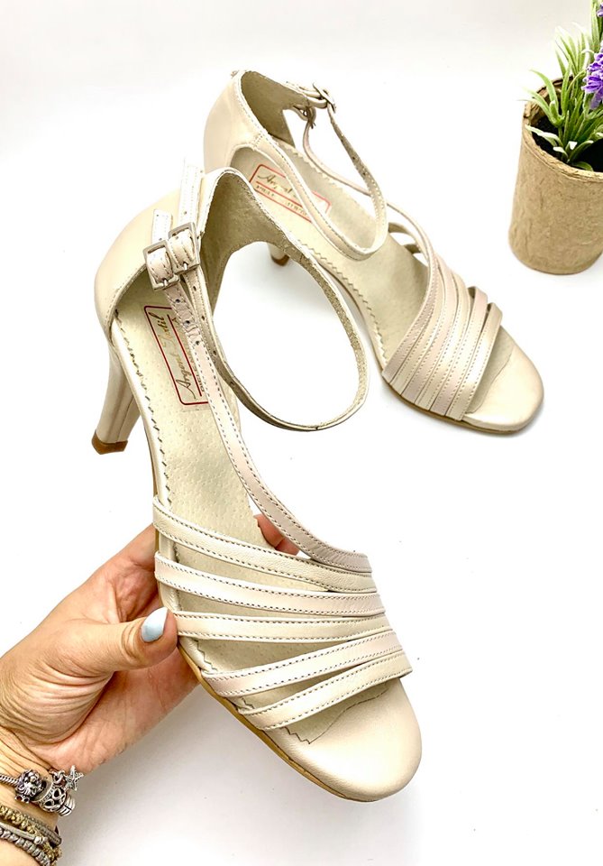Sandale cu talpa de dans construita si finisata manual si cu toc de 7cm mediu.