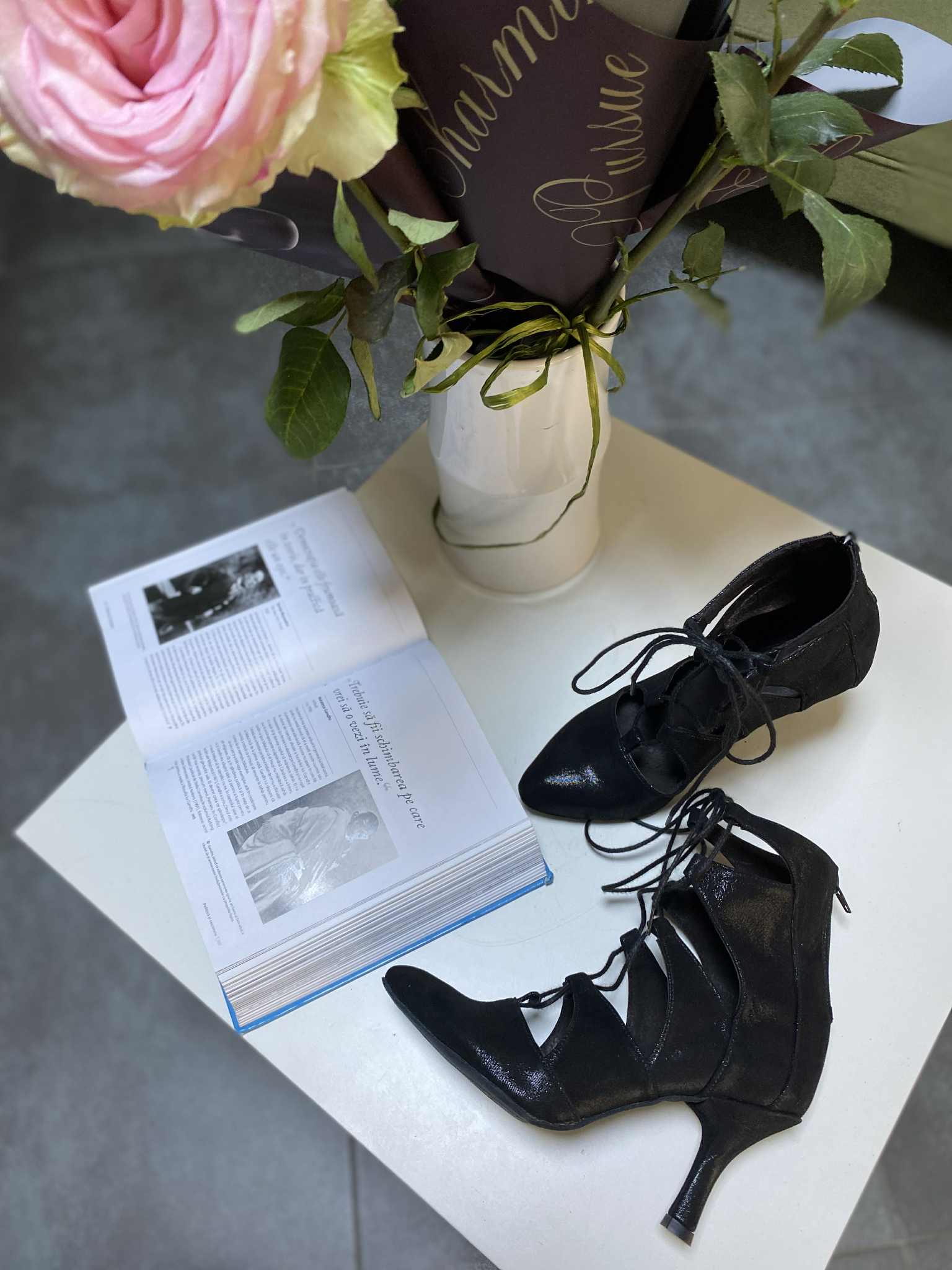 Botine pentru dans cu toc de 7cm clepsidra si cu talpa construita si finisata manual special pentru dansuri.