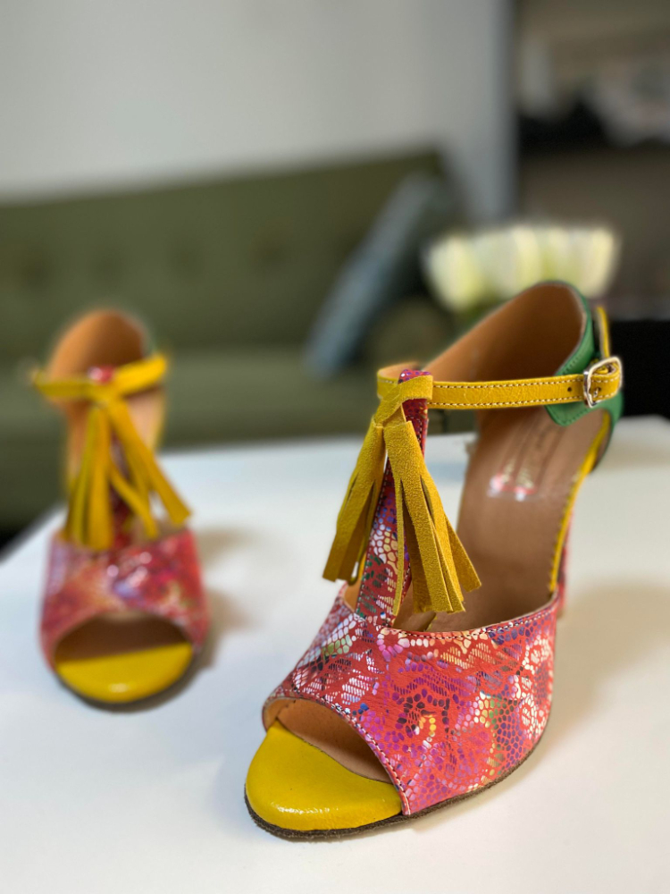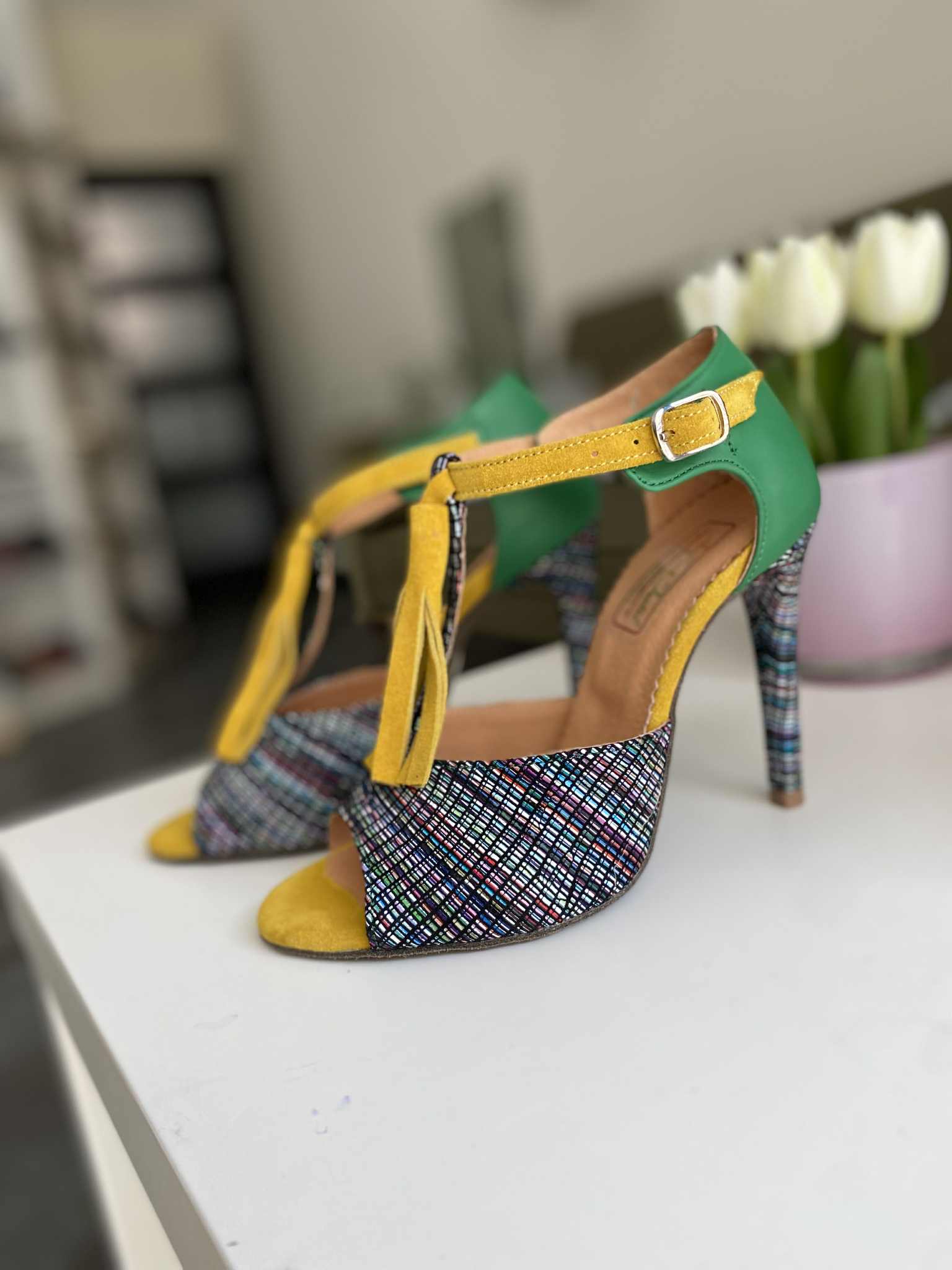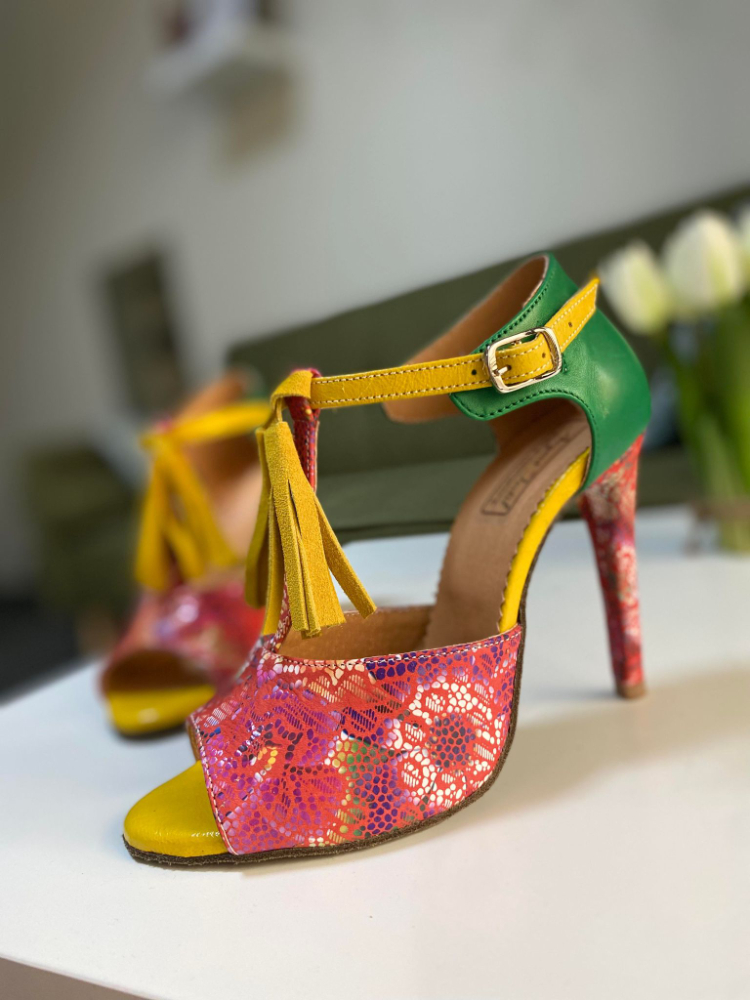Sandale pentru dans cu toc de 10-11cm drept,subtire, imbracat si cu talpa construita si finisata manual special pentru dansuri.