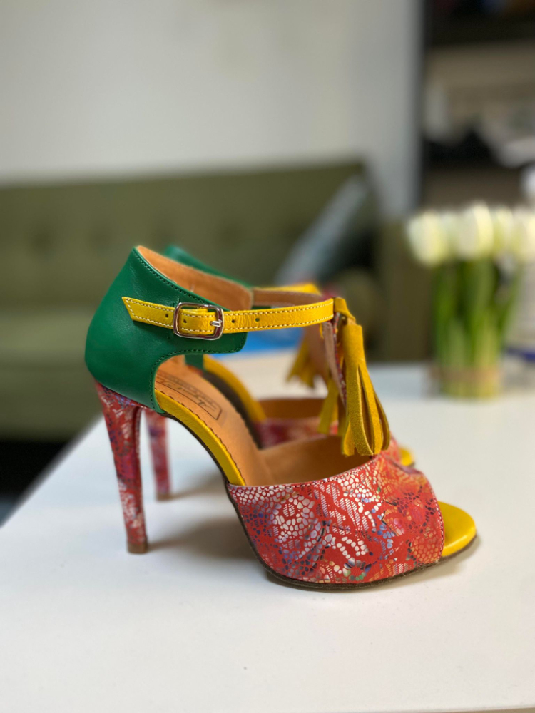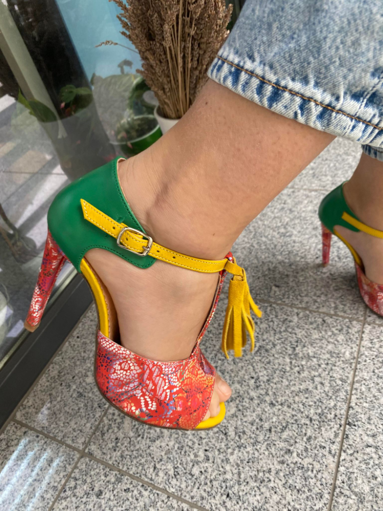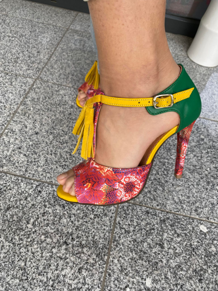 Sandalele pot fi confectionate din orice culoare sau combinatie de culori si din orice tip de piele (box, piele intoarsa, piele lacuita).