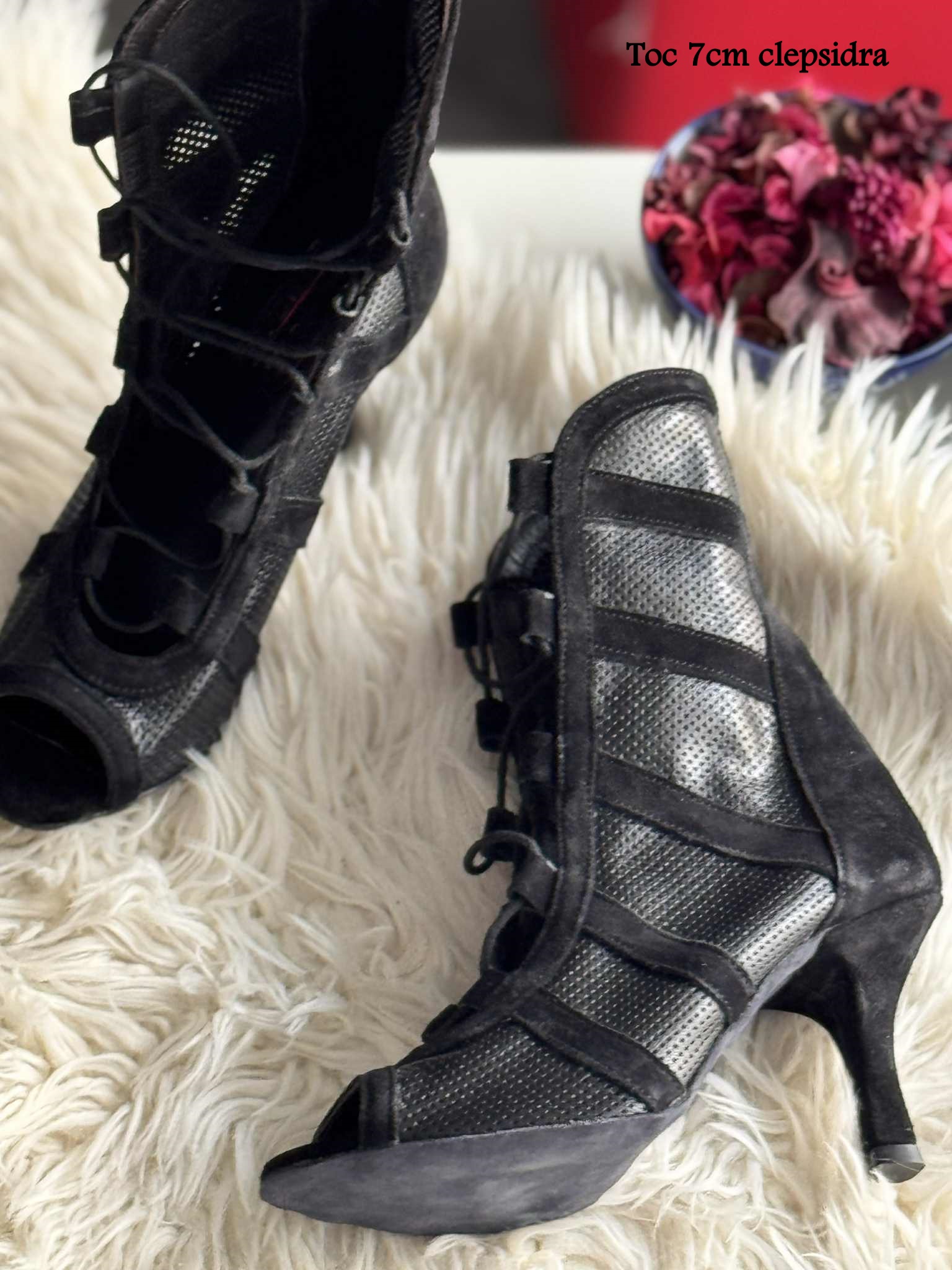 Sandale pentru dans cu toc de 9cm clepsidra si cu talpa construita si finisata manual special pentru dansuri.