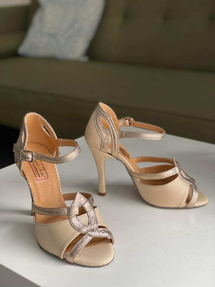 Sandale pentru dans cu toc de 9cm clepsidra si cu talpa construita si finisata manual special pentru dansuri.