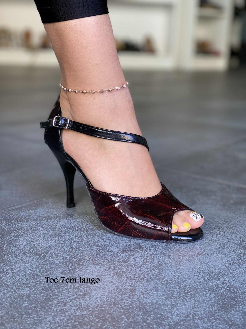 Sandale pentru dans cu toc de 7cm subtire tango simplu si cu talpa construita si finisata manual special pentru dansuri.