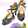 Sandale pentru dans cu toc de 9cm clepsidra imbracat si cu talpa construita si finisata manual special pentru dansuri.