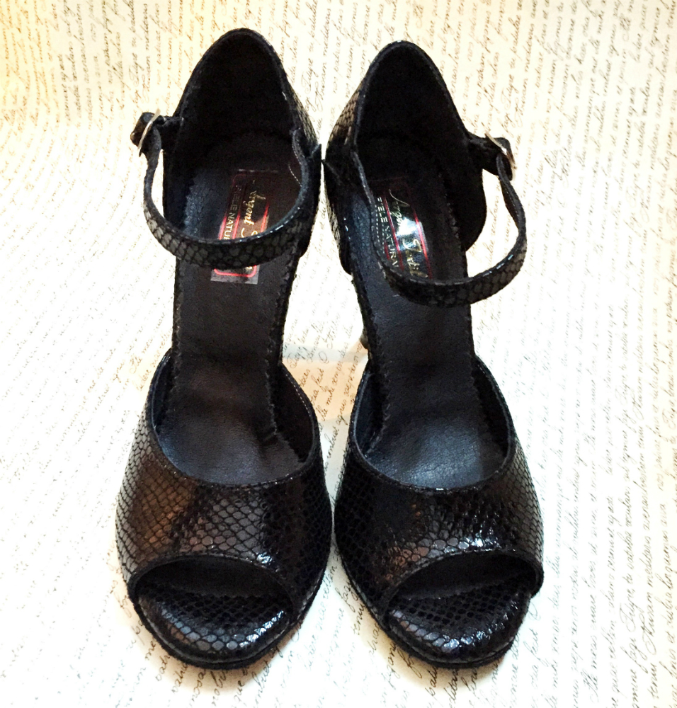 Sandale pentru dans cu toc de 9cm  tango simplu si cu talpa construita si finisata manual special pentru dansuri.