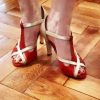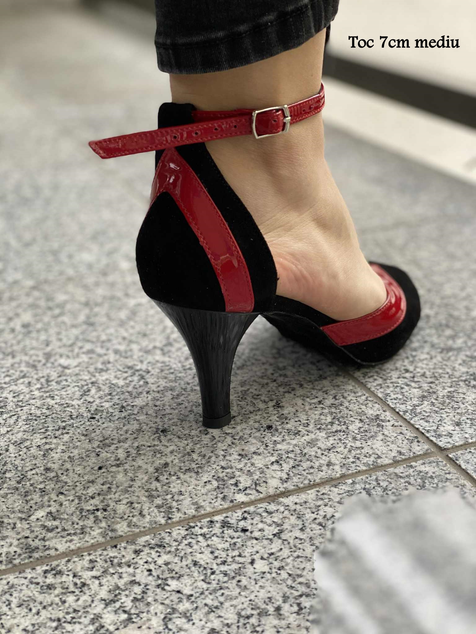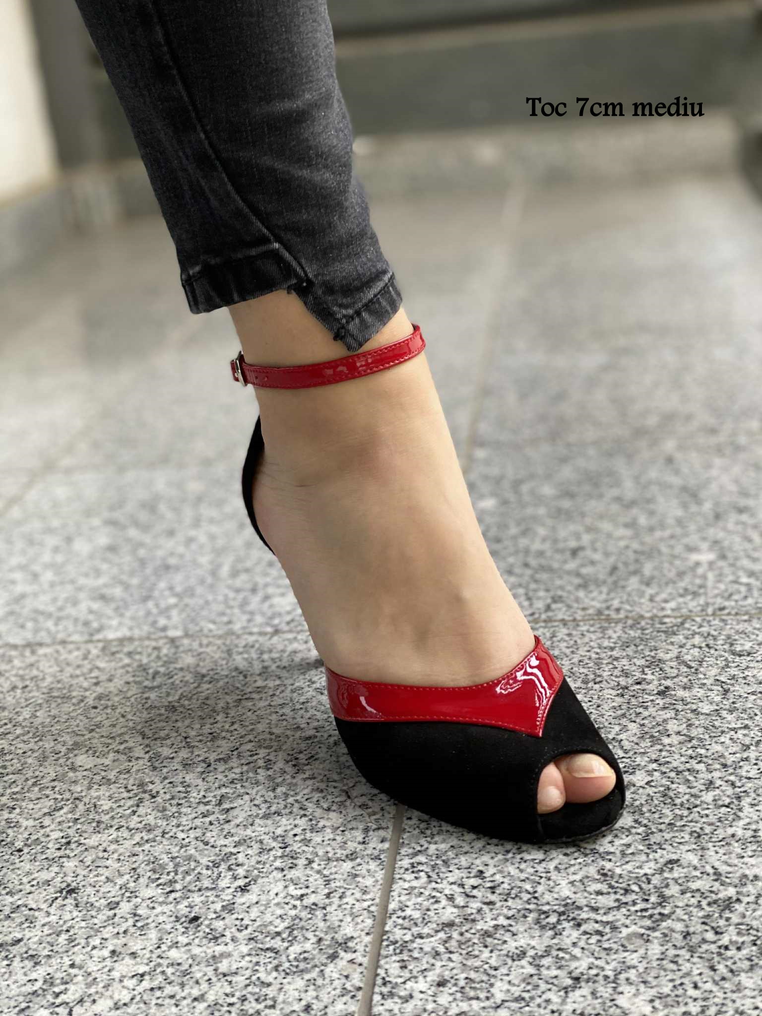 Sandale pentru dans cu toc de 7cm mediu, cu talpa construita si finisata manual special pentru dansuri.