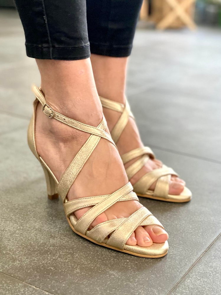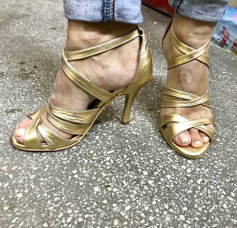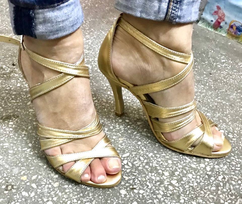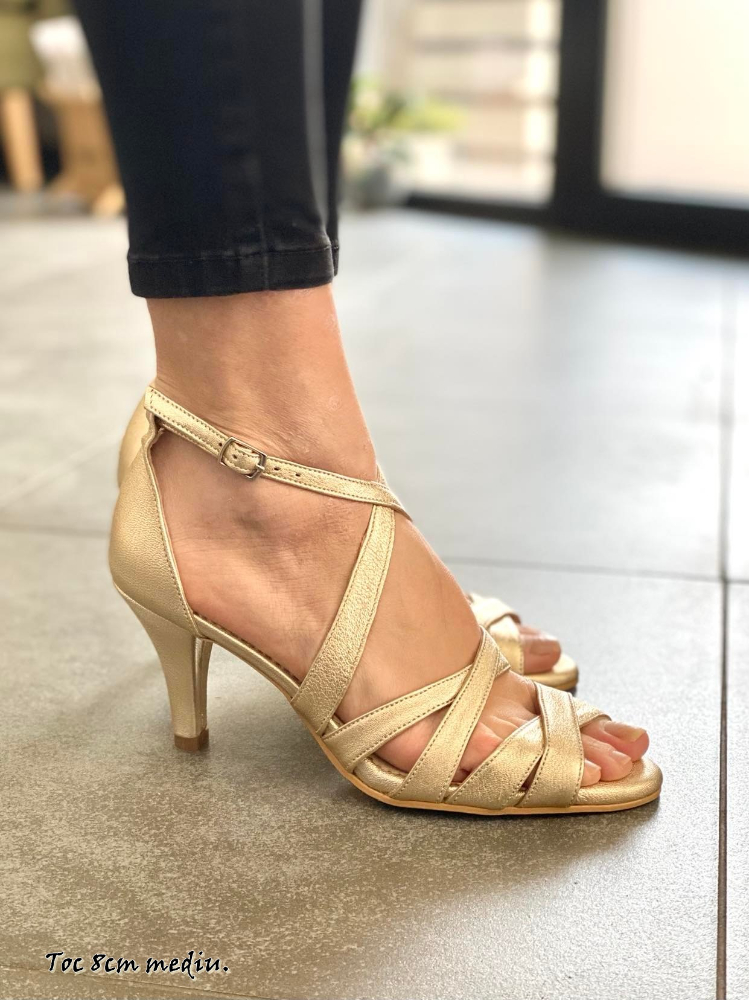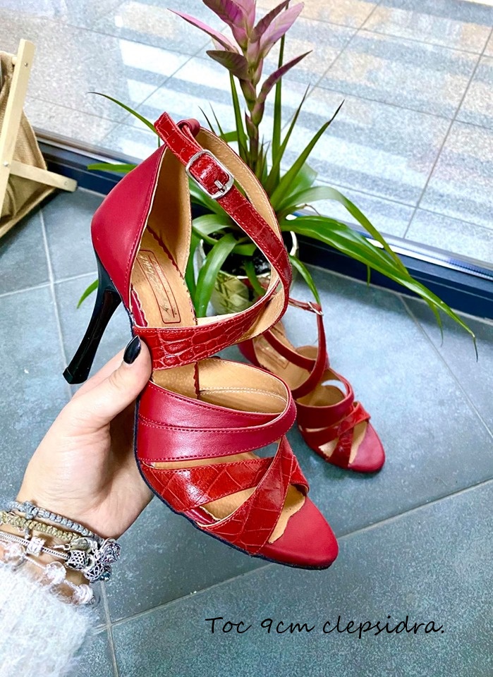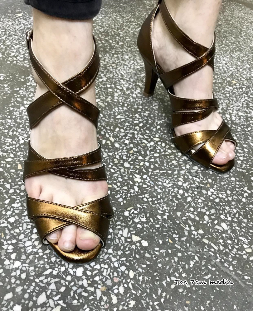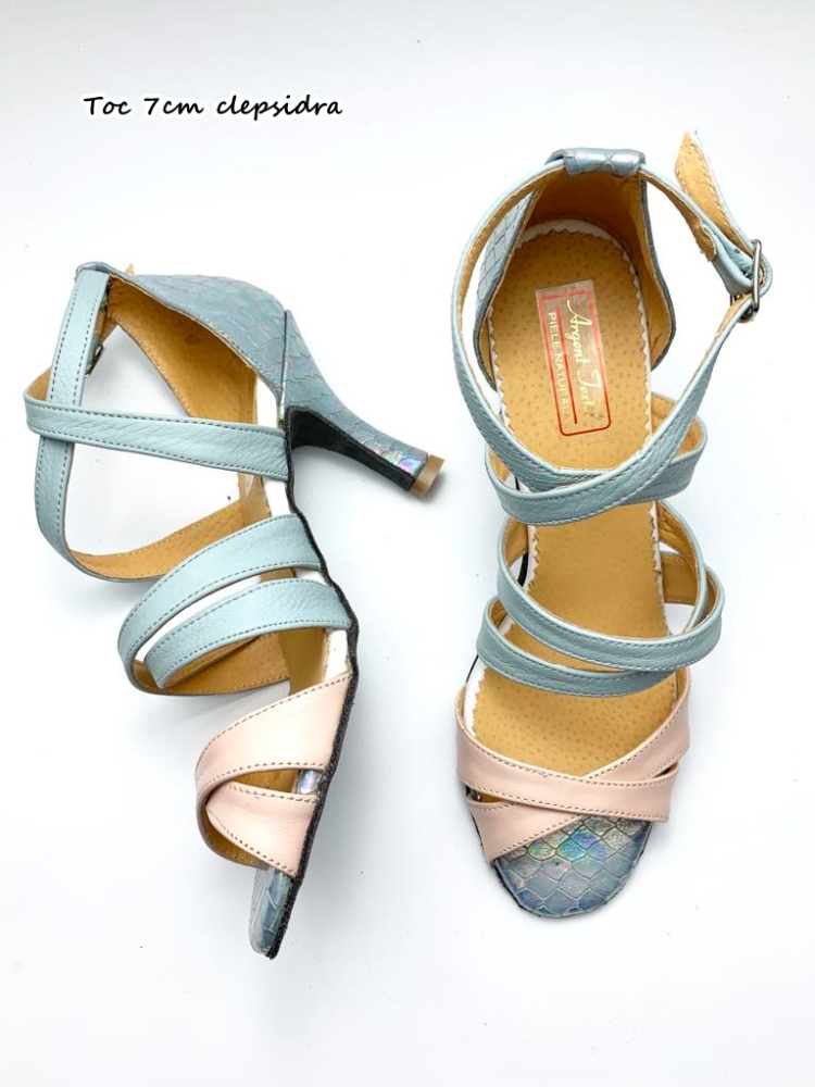 Sandale pentru dans cu toc de 8cm mediu imbracat si cu talpa construita si finisata manual special pentru dansuri.