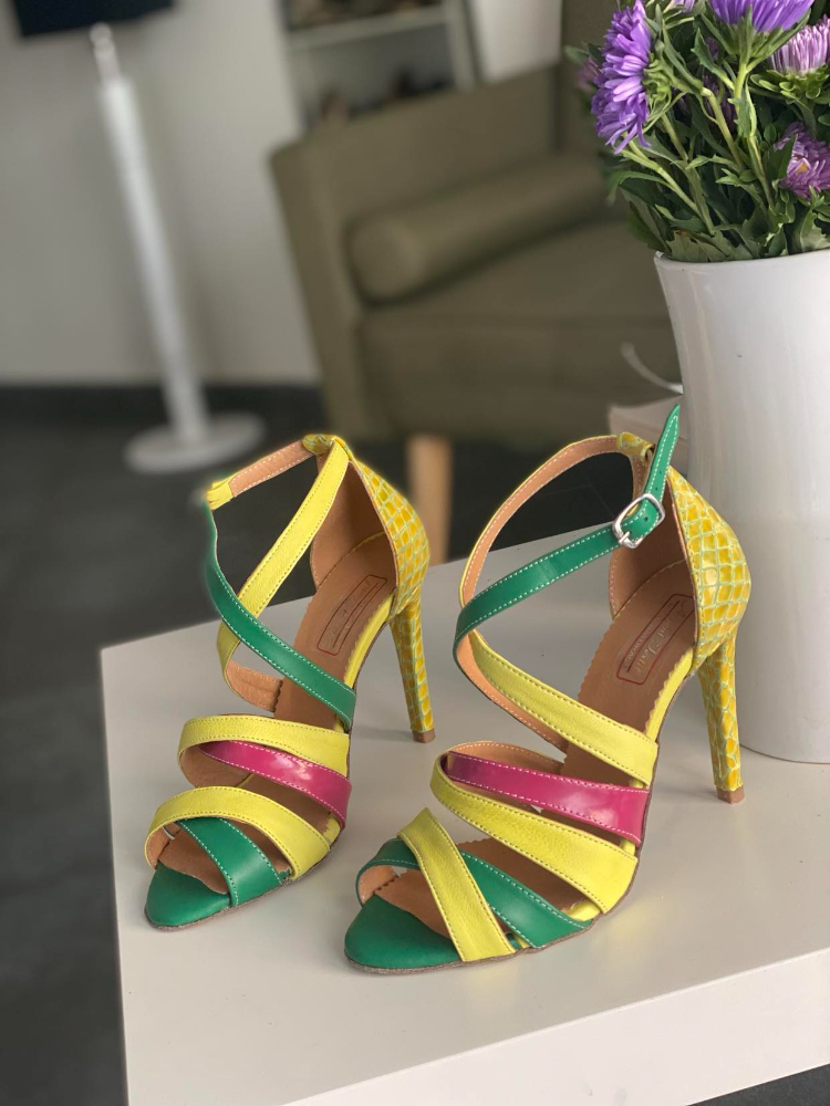Sandalele pot fi confectionate din orice culoare sau combinatie de culori si din orice tip de piele (box, piele intoarsa, piele lacuita).