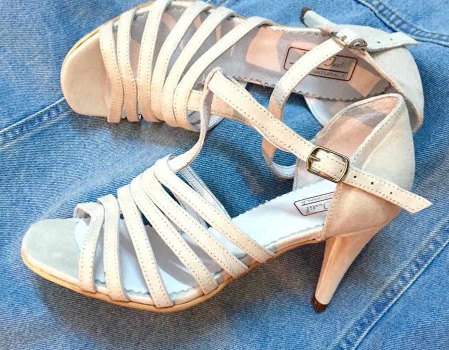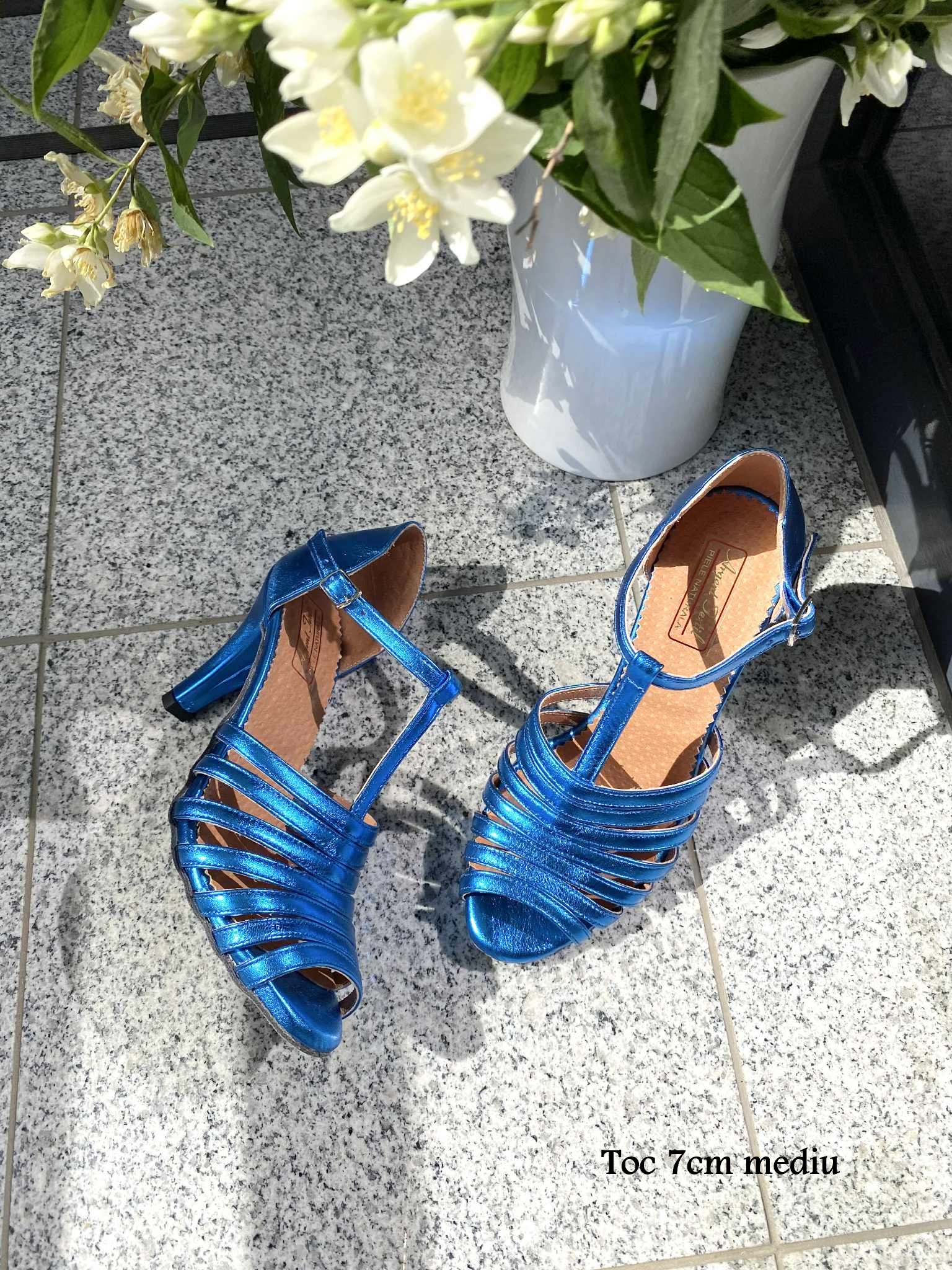 Sandale pentru dans cu toc de 8cm mediu si cu talpa construita si finisata manual special, pentru dansuri.