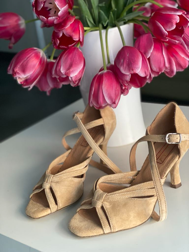 Sandale pentru dans cu toc de 7cm clepsidra si cu talpa construita si finisata manual special pentru dansuri.