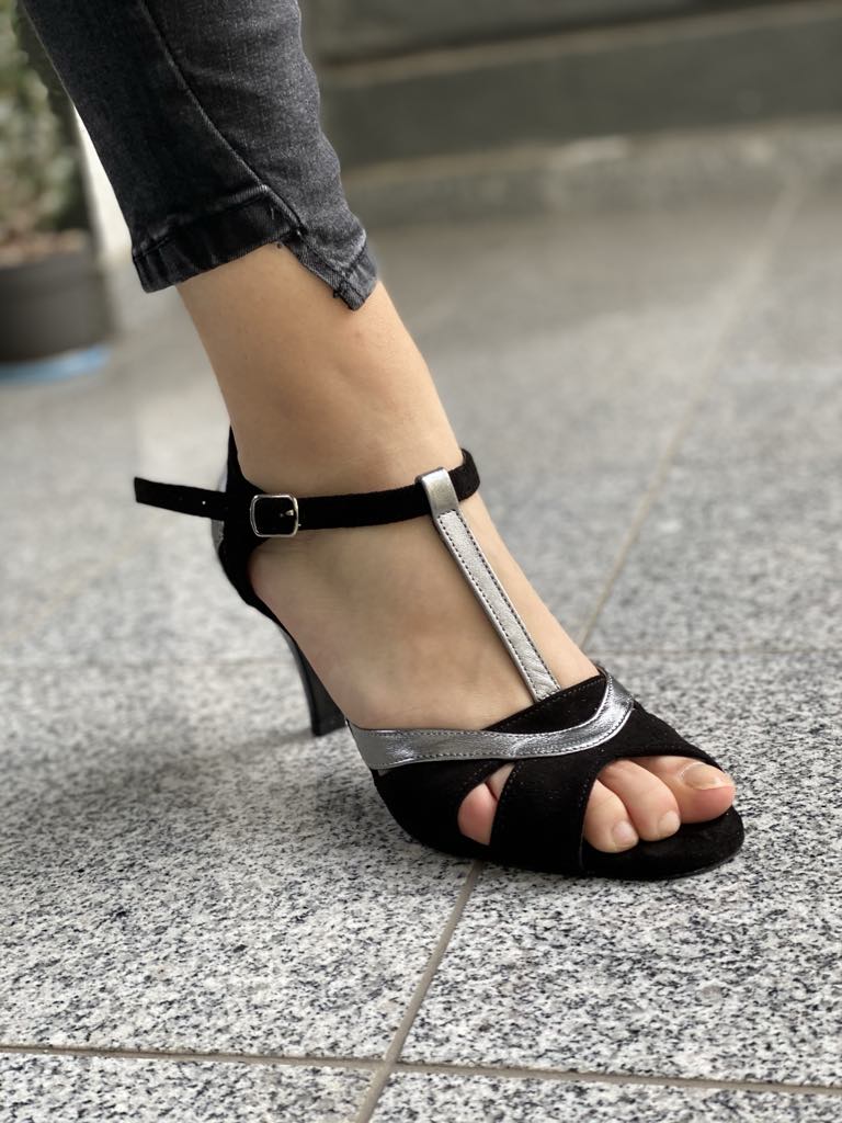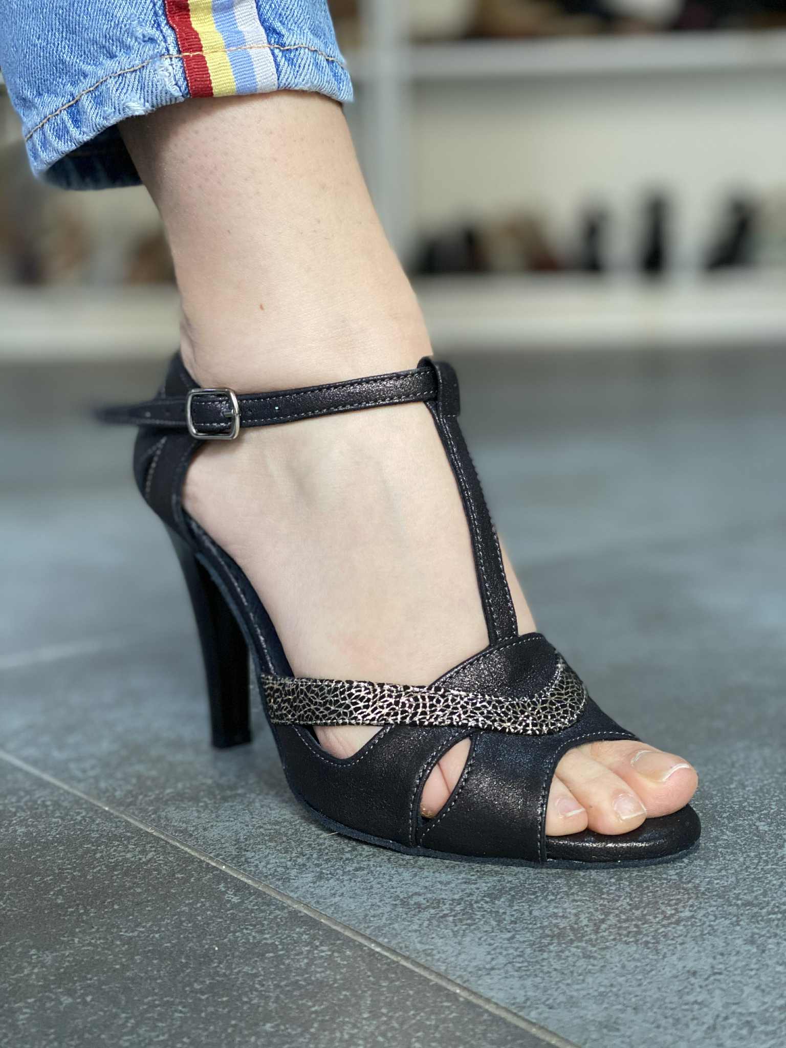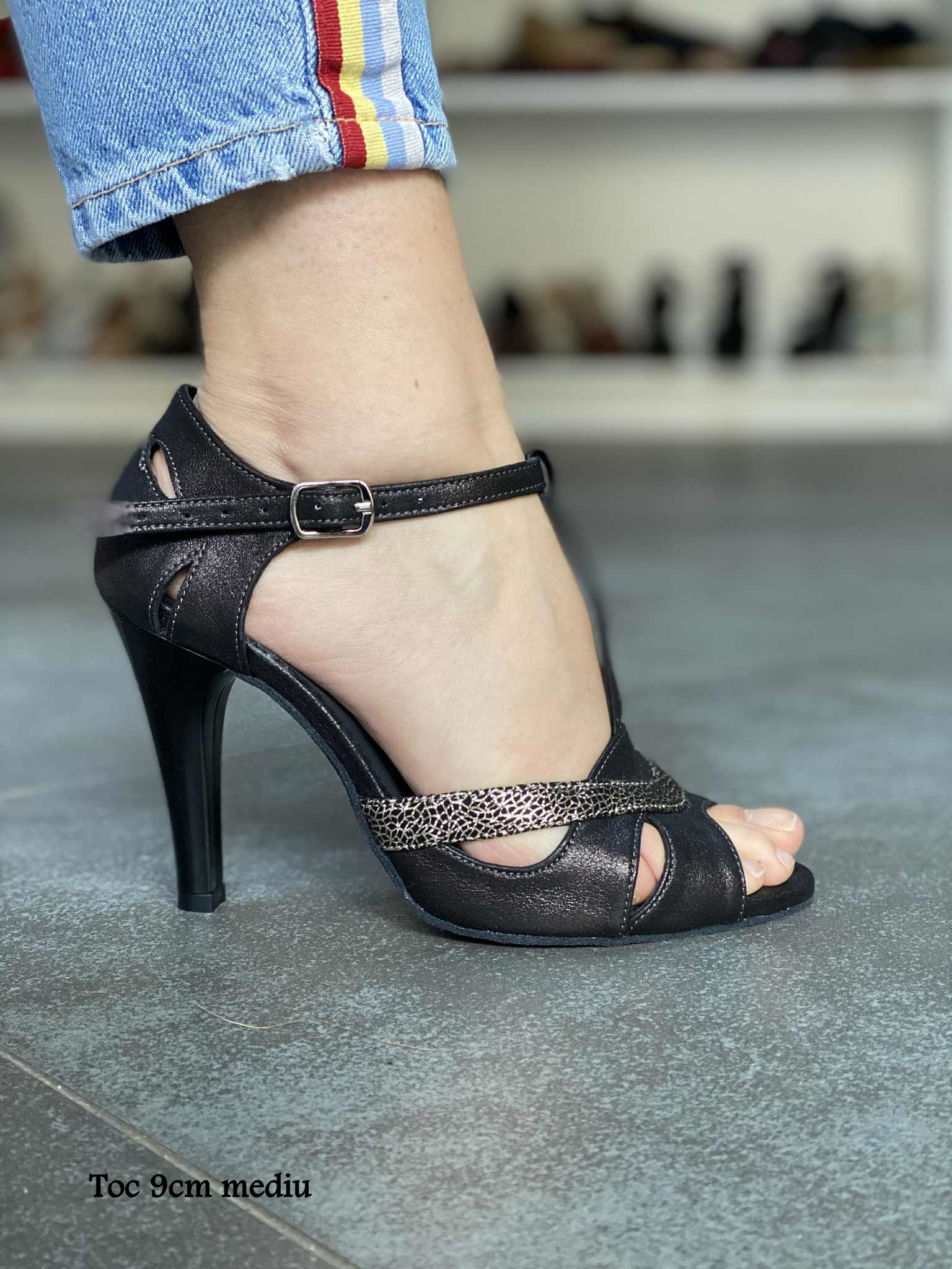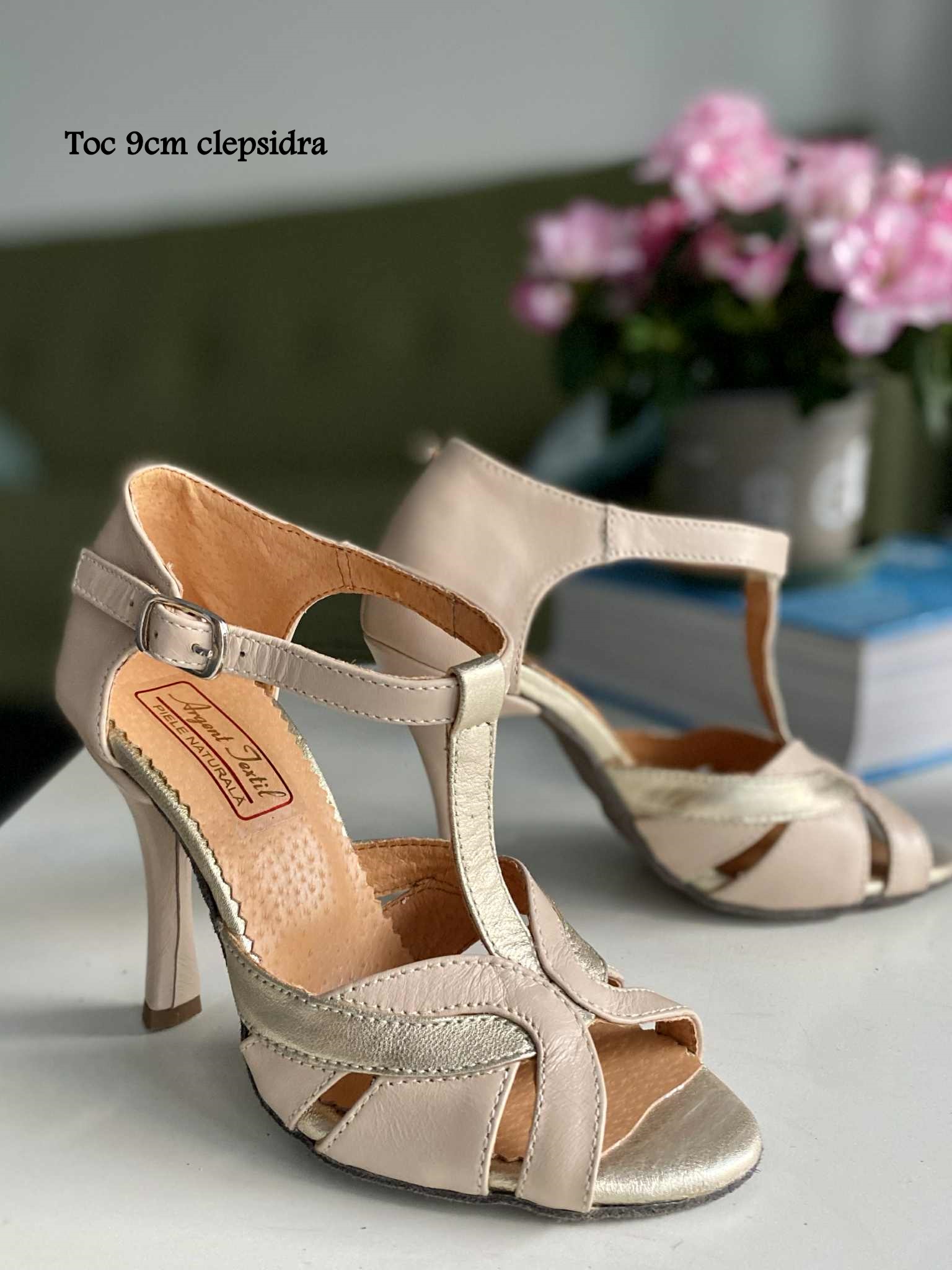 Sandale pentru dans cu toc de 9cm clepsidra imbracat si cu talpa construita si finisata manual special pentru dansuri.