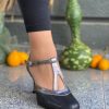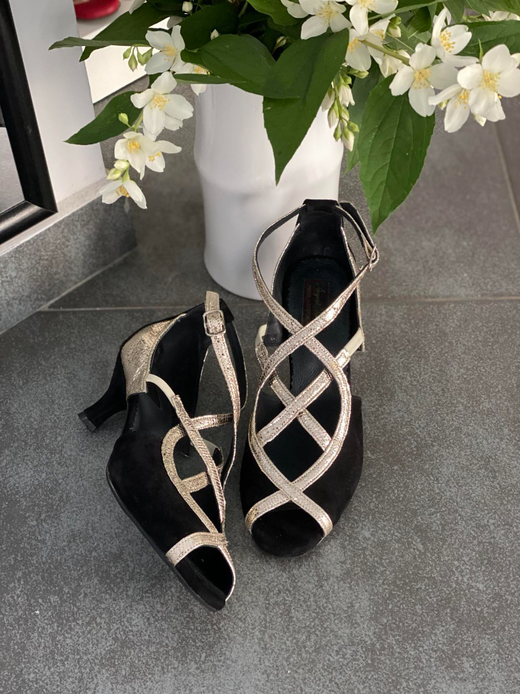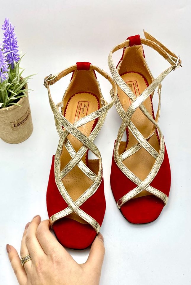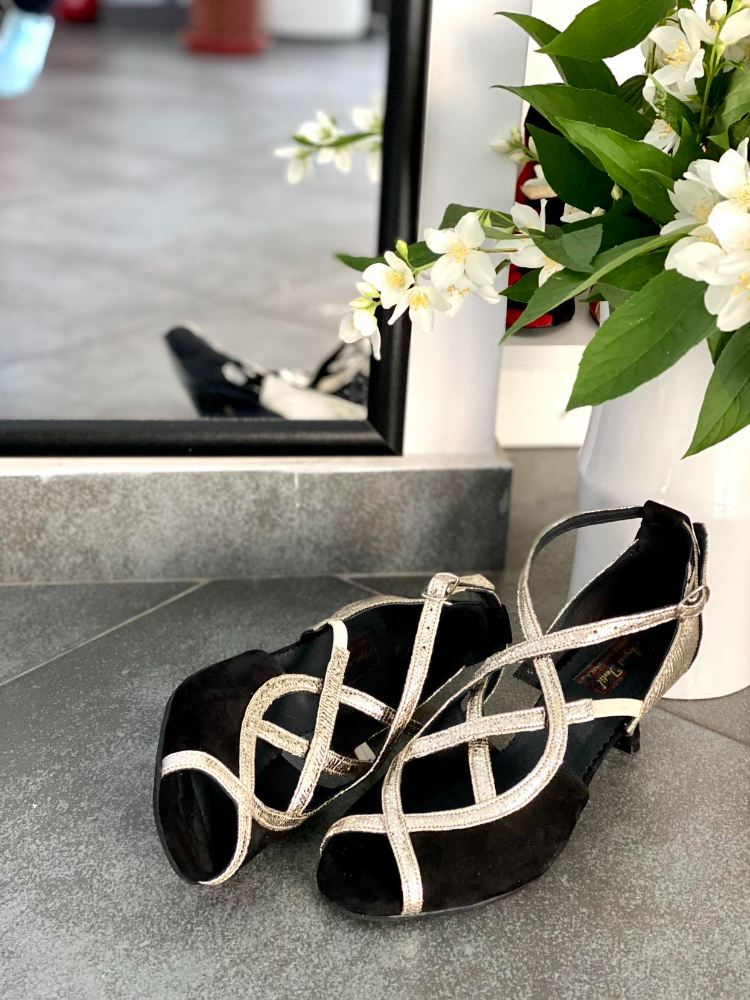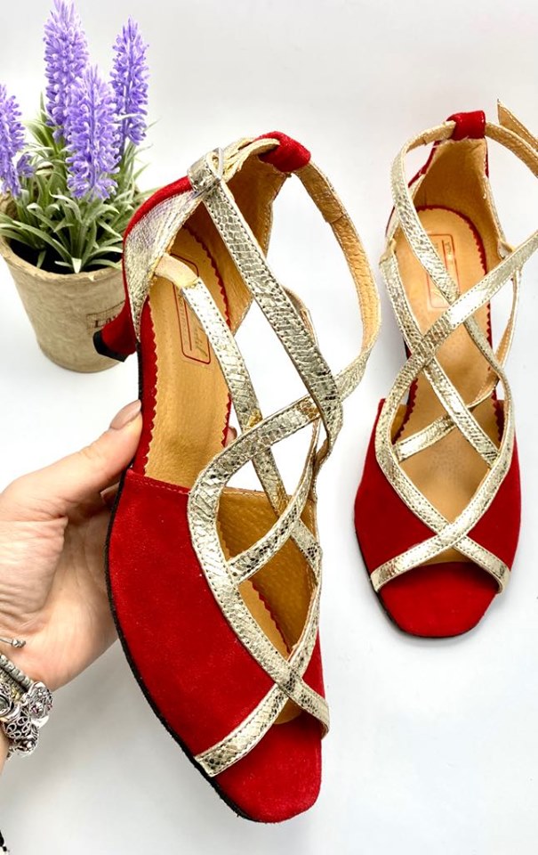 Sandale pentru dans cu toc de 4cm clepsidra imbracat si cu talpa construita si finisata manual, special pentru dansuri.