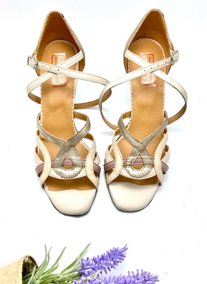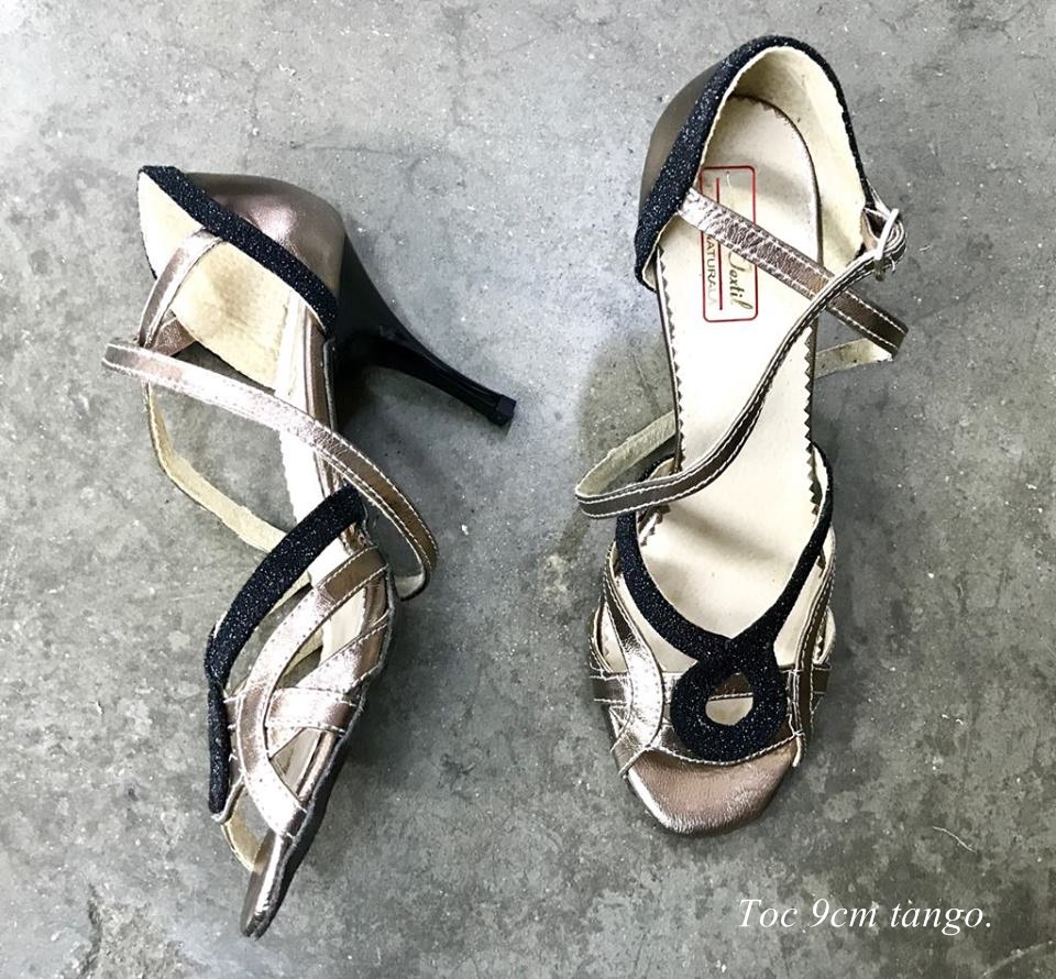 Dance sandals with a medium heel of 7cm and with sole built and finished specially hand for dances.