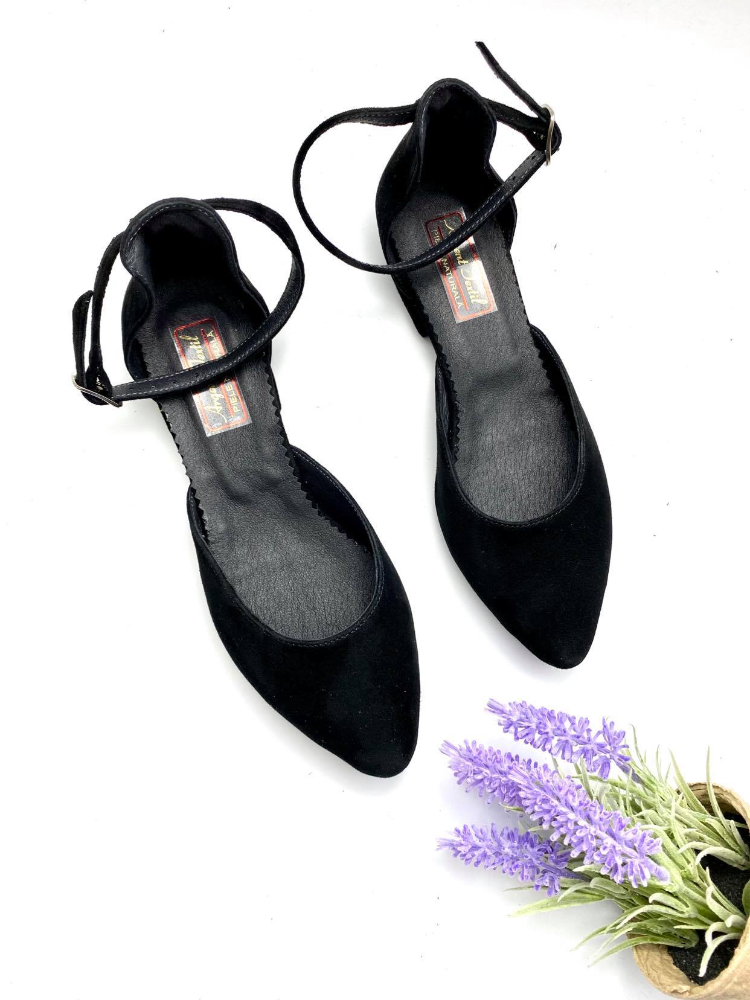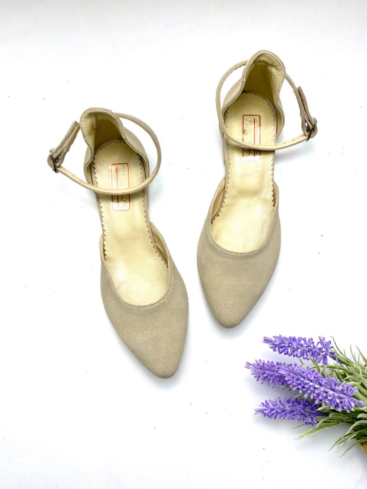 Balerini stiletto,din piele naturala,cu toc de 1,5cm si talpa subtire bej.