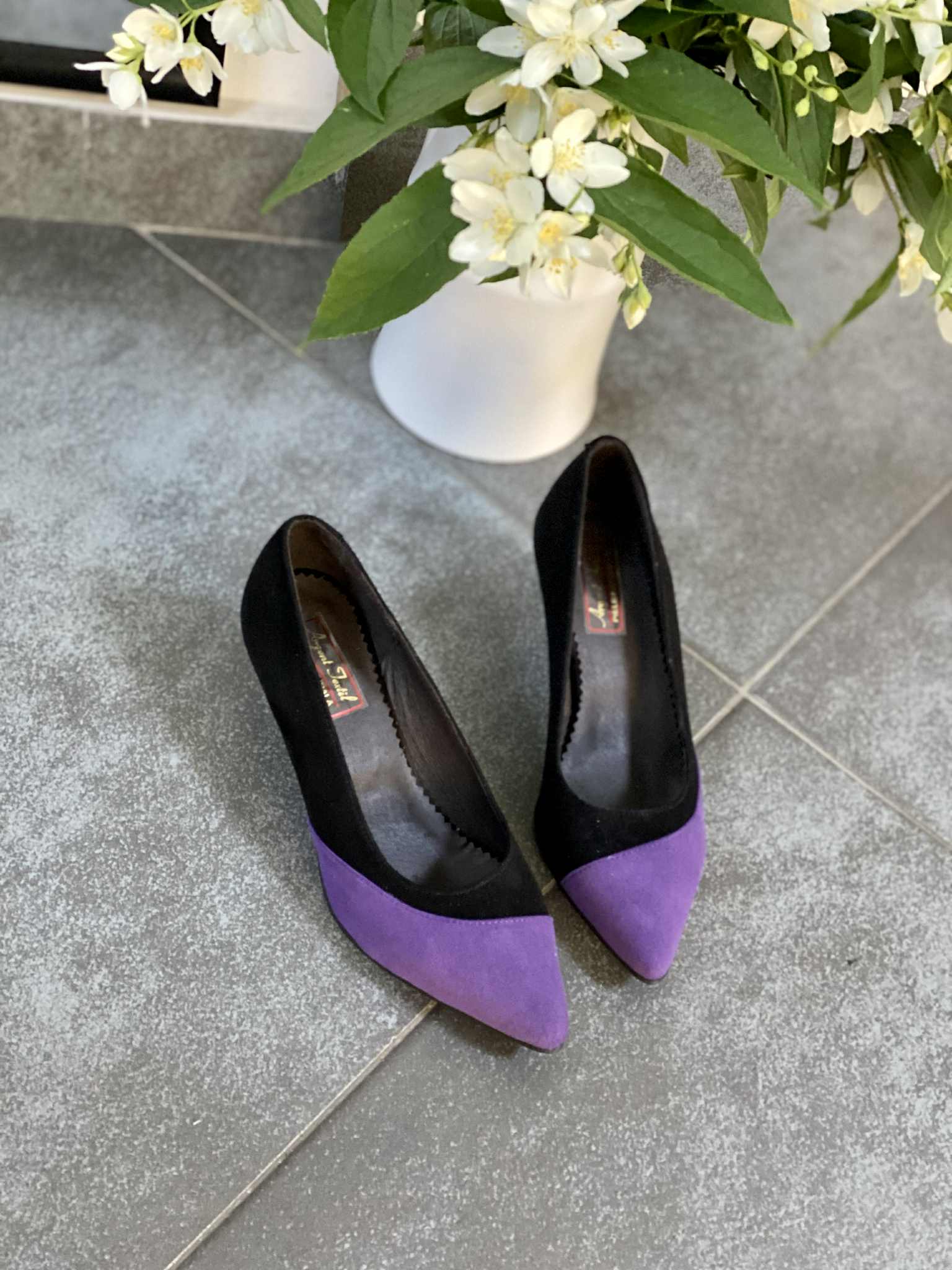 Pantofii ii putem confectiona din orice culoare sau combinatie de culori si din orice tip de piele (box, piele intoarsa, piele lacuita).
