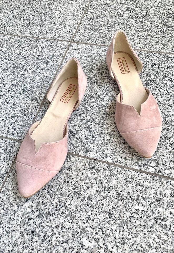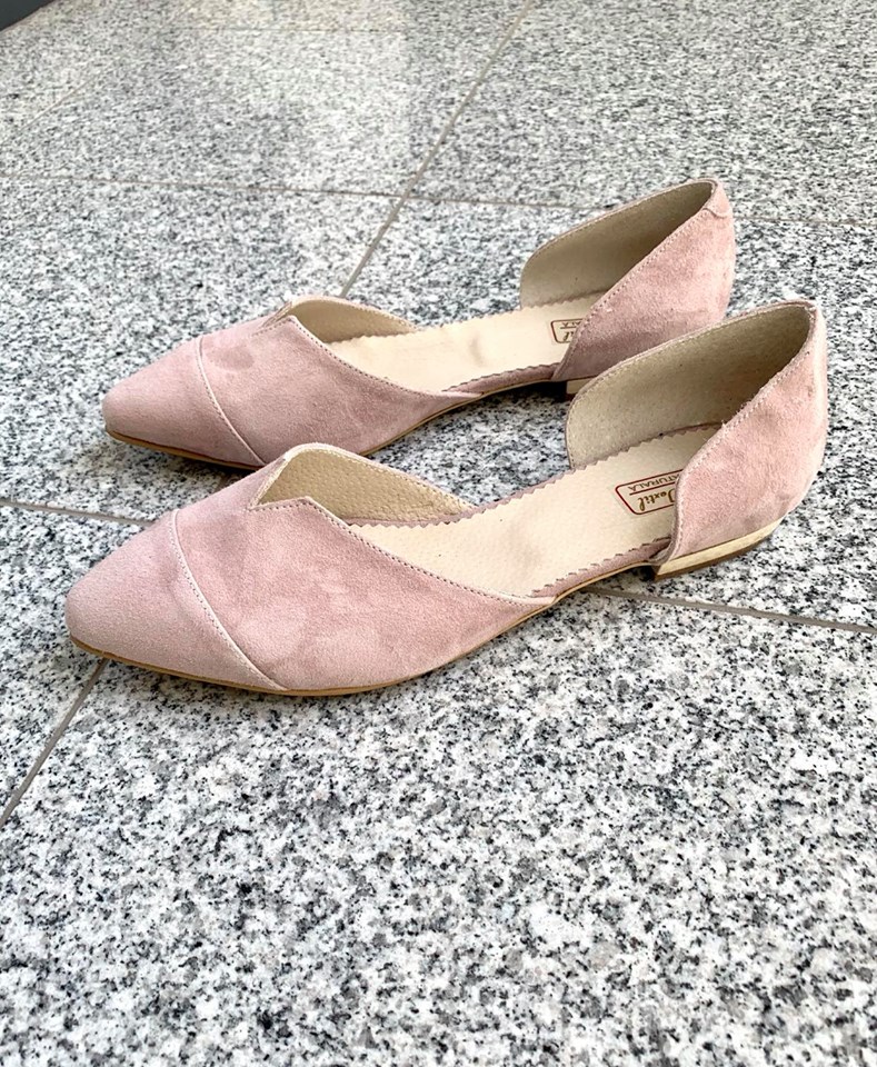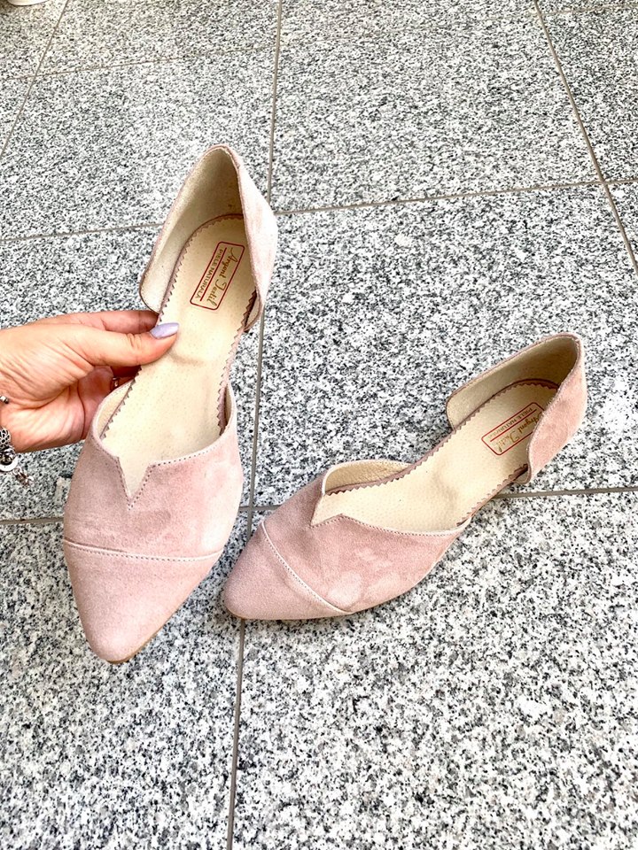 Balerini stiletto,din piele naturala,cu toc de 1,5cm imbracat si talpa subtire bej.