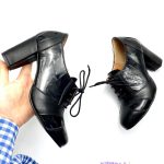 Botine damă din piele naturală, cu talpă subțire si toc de 7cm și închidere cu șiret.