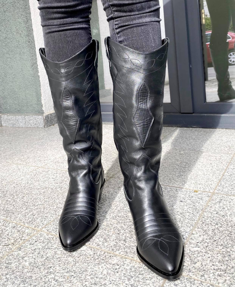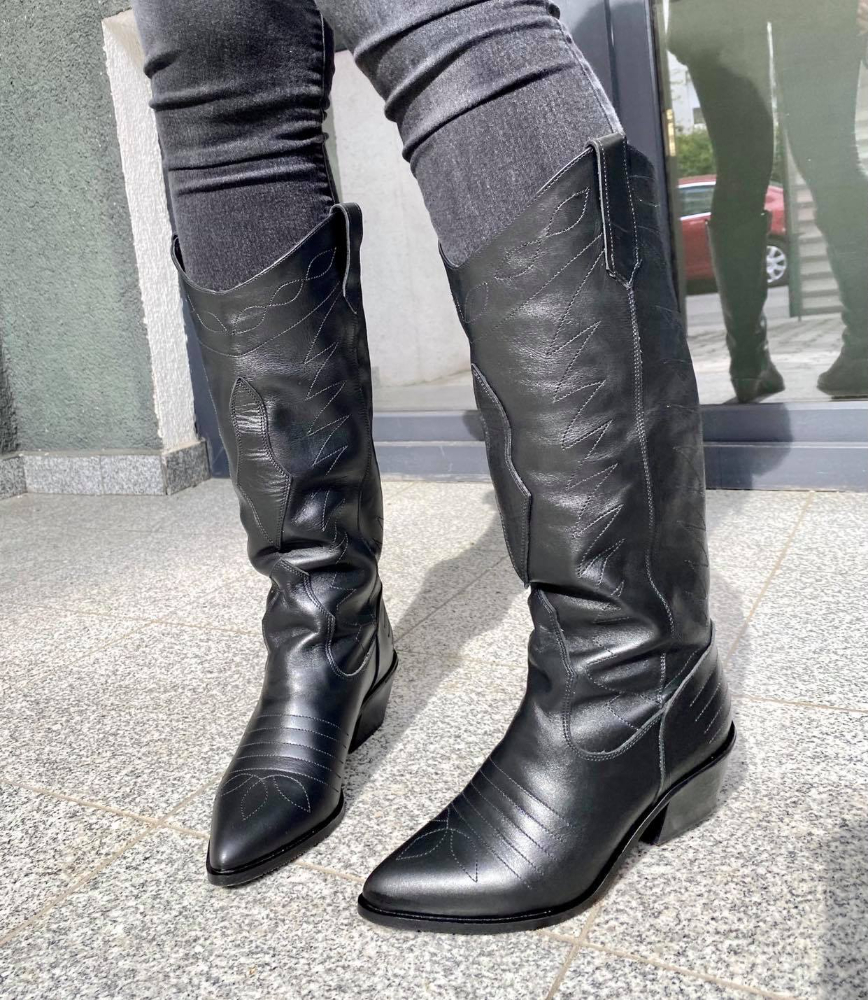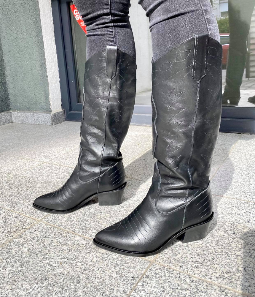 Ciocate damă, lungi,  din piele naturală și cu toc de 5 gros conic lat.