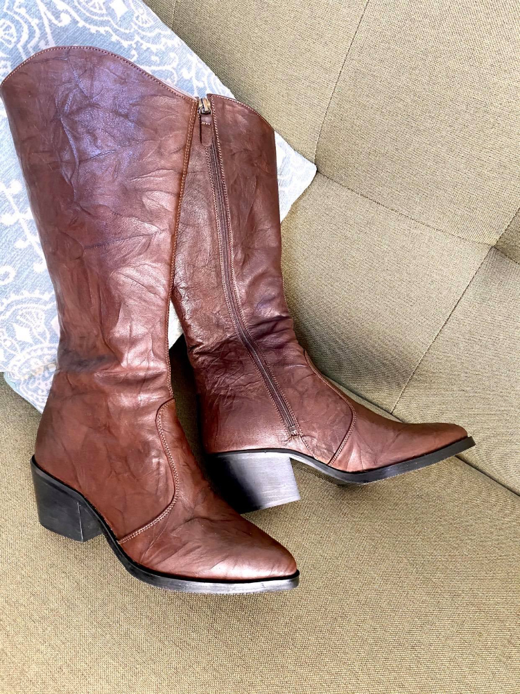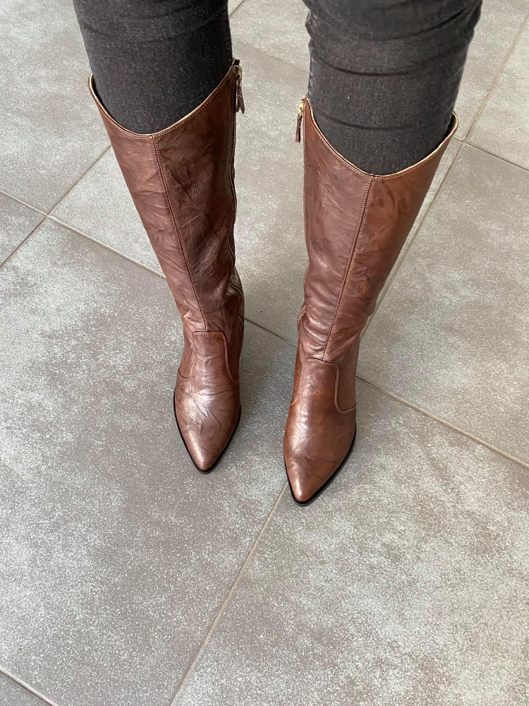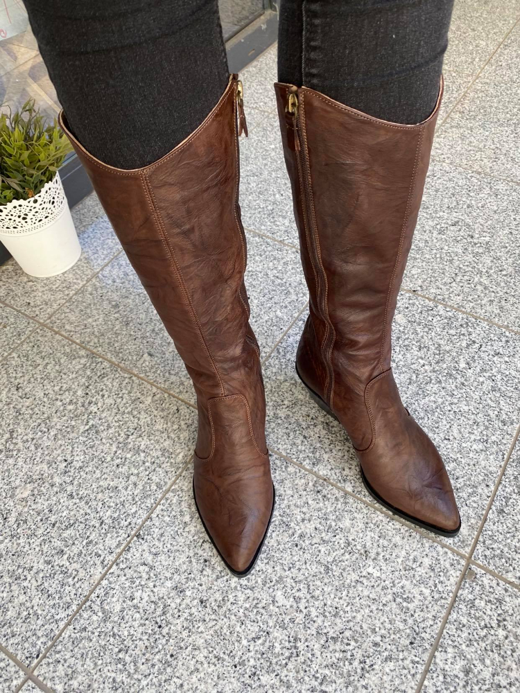 Ciocate damă, lungi,  din piele naturală și cu toc de 5 gros conic și închidere cu fermoar.