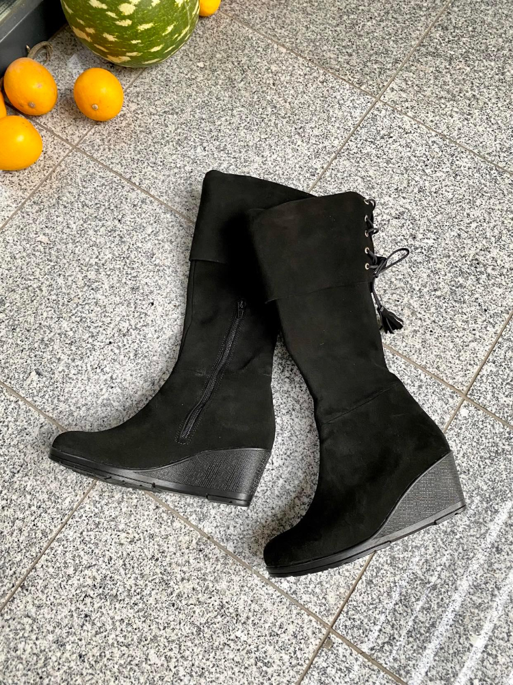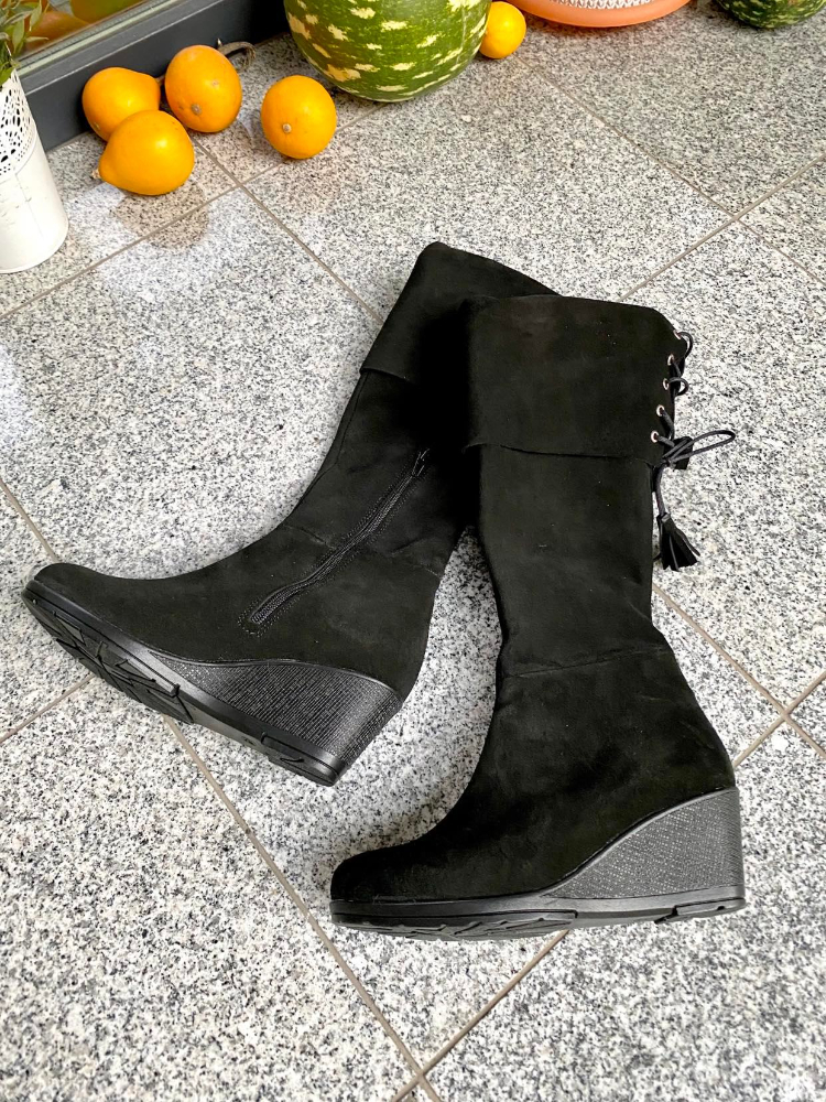 Cizme damă din piele naturală, cu talpă ortopedică înaltă și închidere cu fermoar.