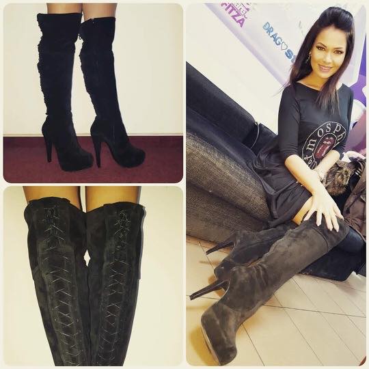 Cizme inalte cu platforma de 4cm si toc de 12cm mediu, cu inchidere cu fermoar si siret de design. Tocul si platforma sunt imbracate.