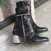 Cizme stiletto din piele naturală, cu talpă subțire antiderapanta si toc de 5cm  super gros evazat și închidere cu fermoar.