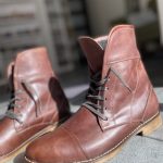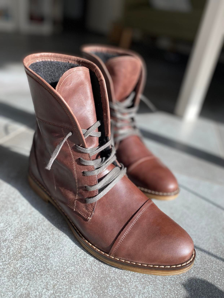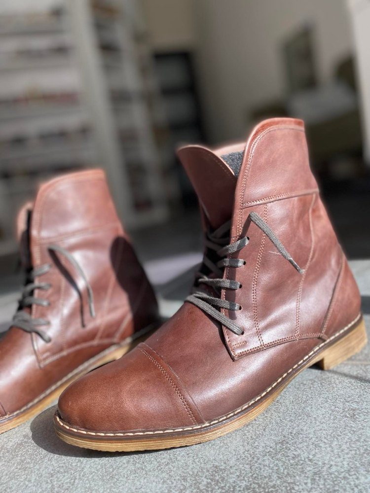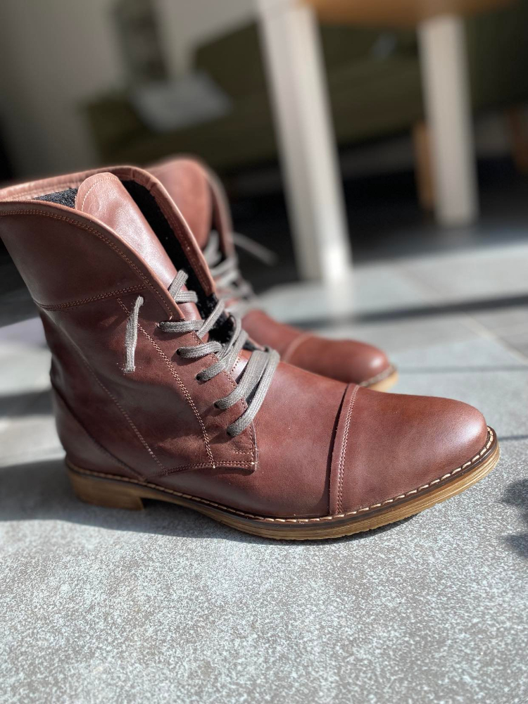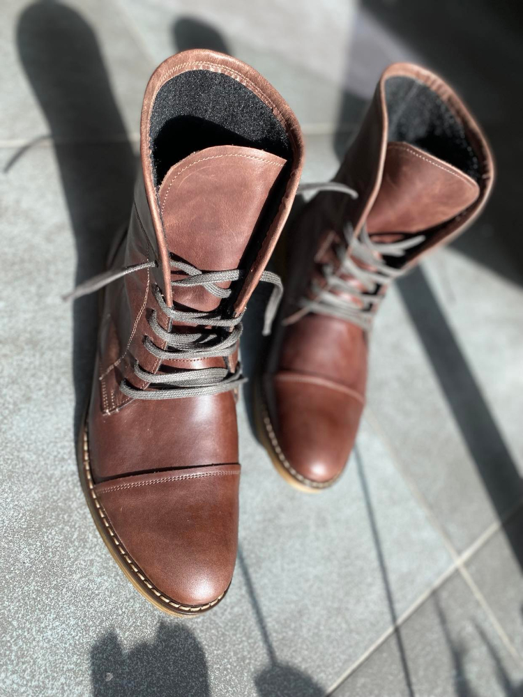 Ghete barbatesti din piele naturală, cu talpă antiderapantă și închidere cu siret.