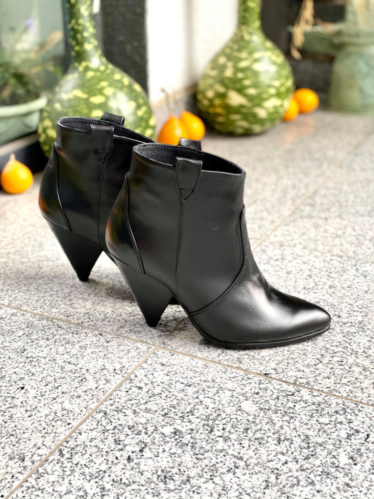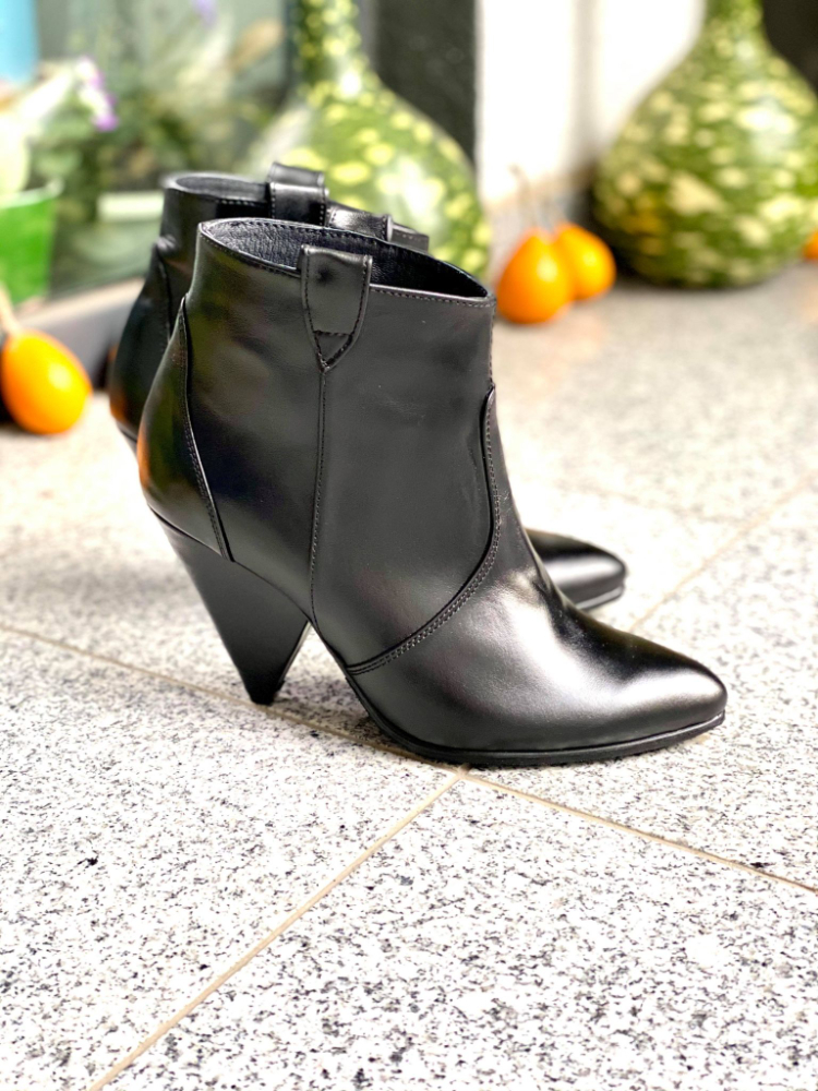 Ciocate damă, scurte,  din piele naturală și cu toc de 6  conic ascutit .