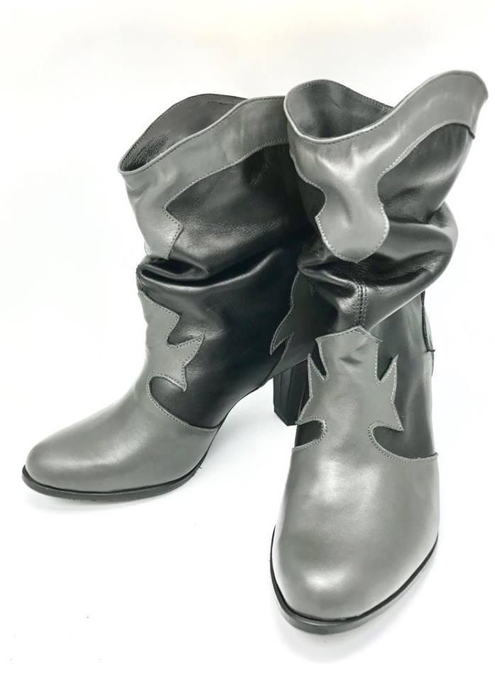 Ghete damă din piele naturală cu talpă medie antiderapantă și cu toc de 7cm  gros.