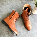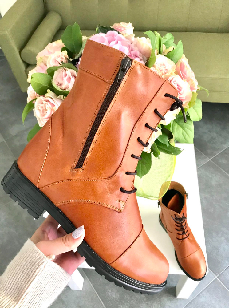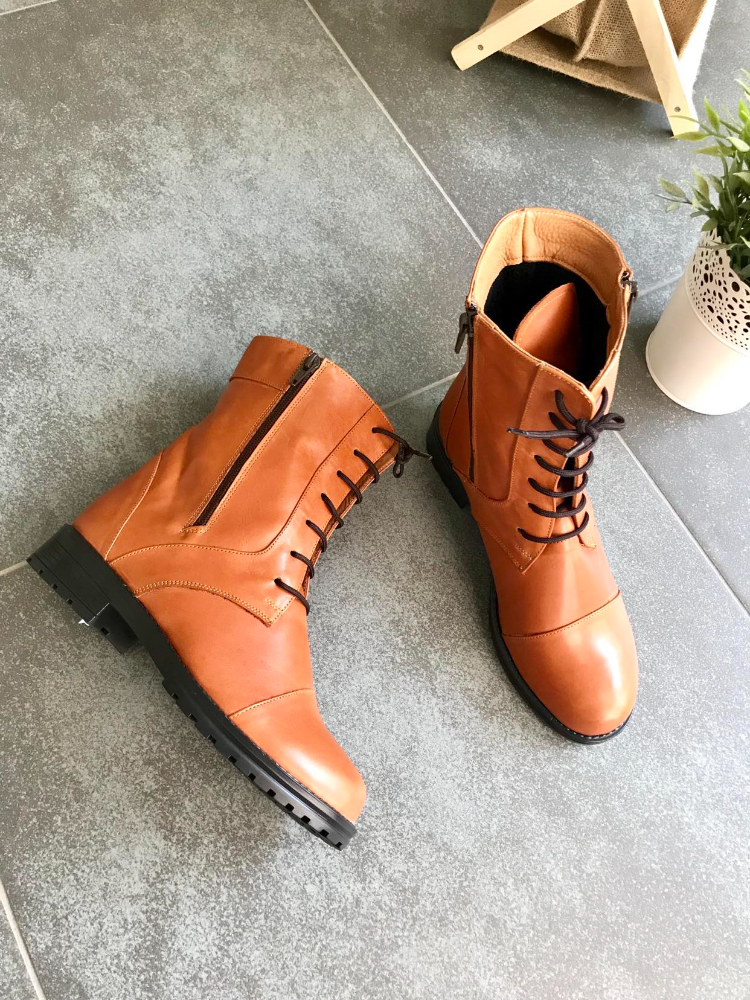 Ghete din piele naturală cu talpă antiderapantă turnată cu toc de 3cm. Închiderea este atât prin fermoar, cât și prin șiret.