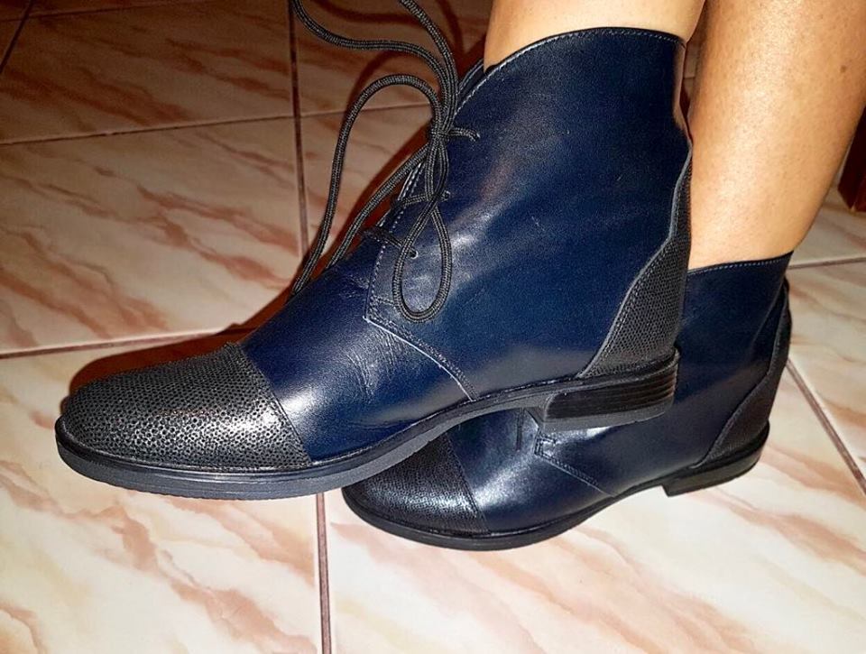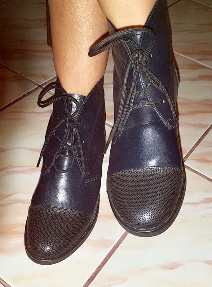 Ghete damă din piele naturală, cu talpă subțire și închidere cu șiret.