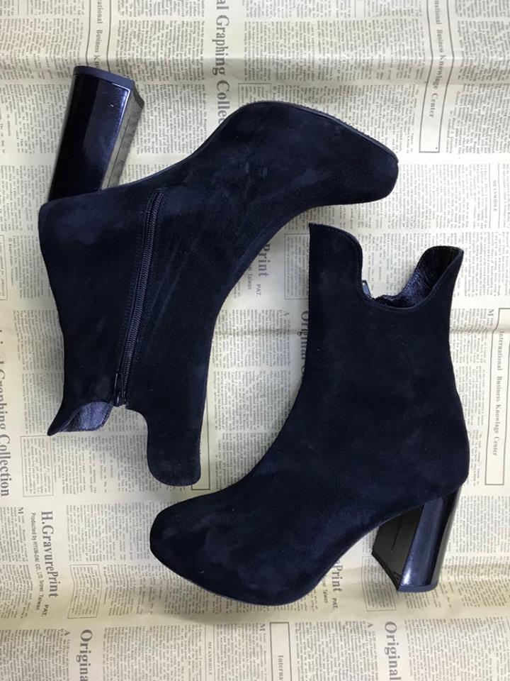 Ghete damă din piele naturală cu talpă subțire și platformă îmbrăcată de 2cm și cu toc de 9cm gros evazat vopsit