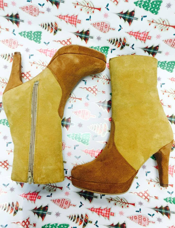 Ghete damă din piele naturală cu talpă subțire și platformă îmbrăcată separat de 2cm și cu toc de 9cm mediu imbracat și închidere cu fermoar.