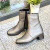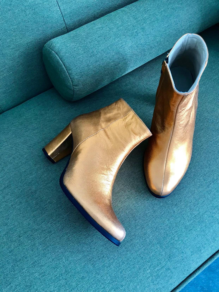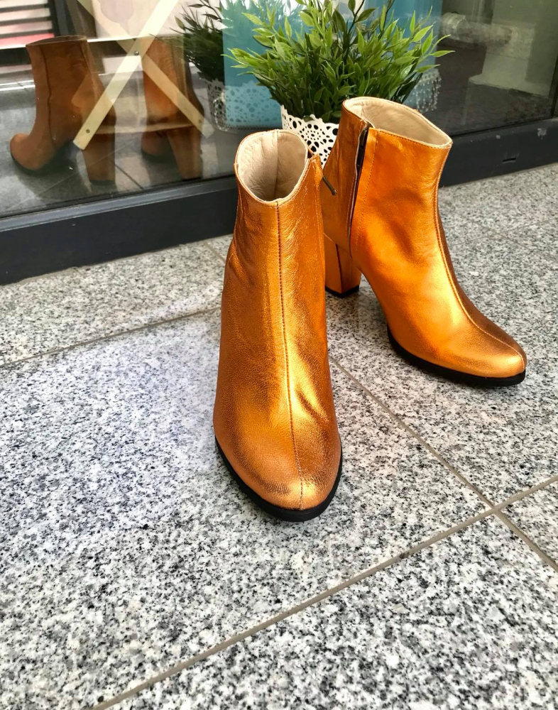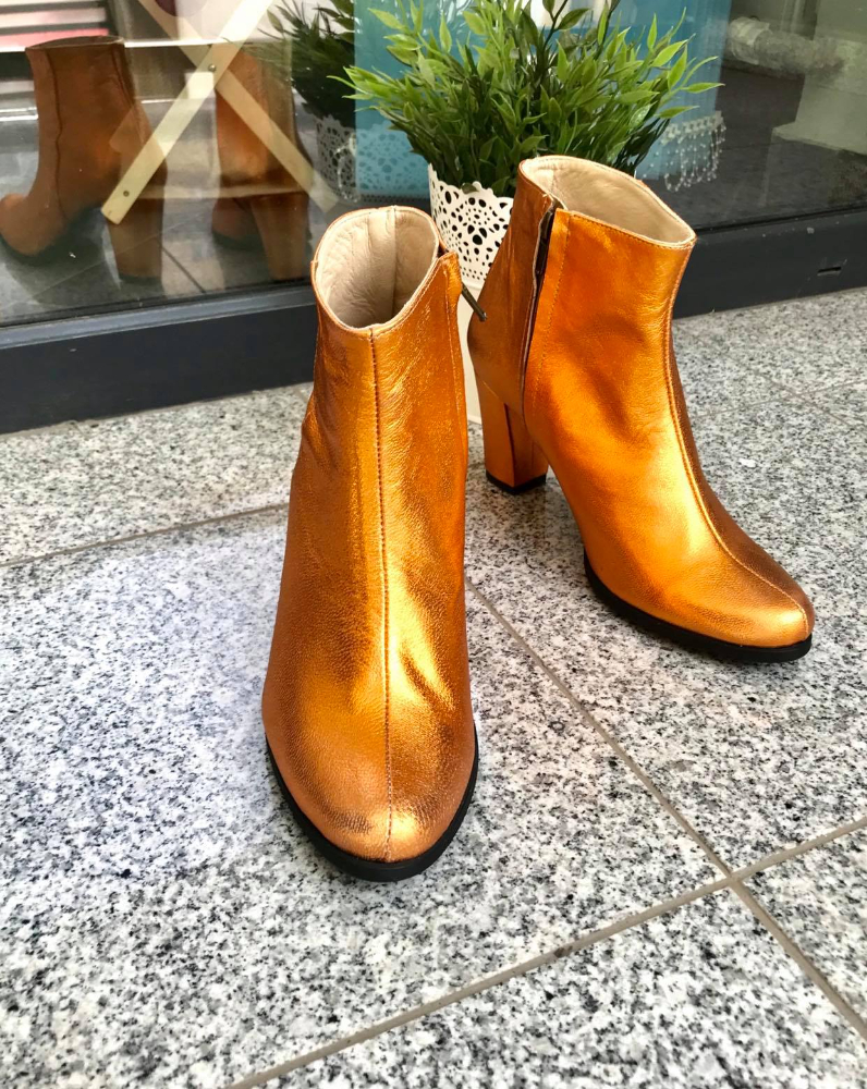 Ghete damă din piele naturală cu talpă medie antiderapantă și cu toc de 7cm super gros și închidere cu fermoar.