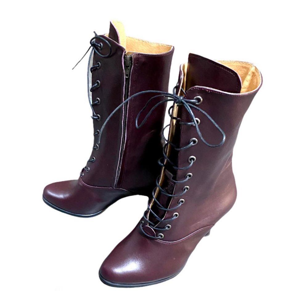 Ghete damă din piele naturală cu talpă medie antiderapantă și cu toc de 7cm  clepsidră.