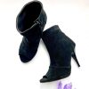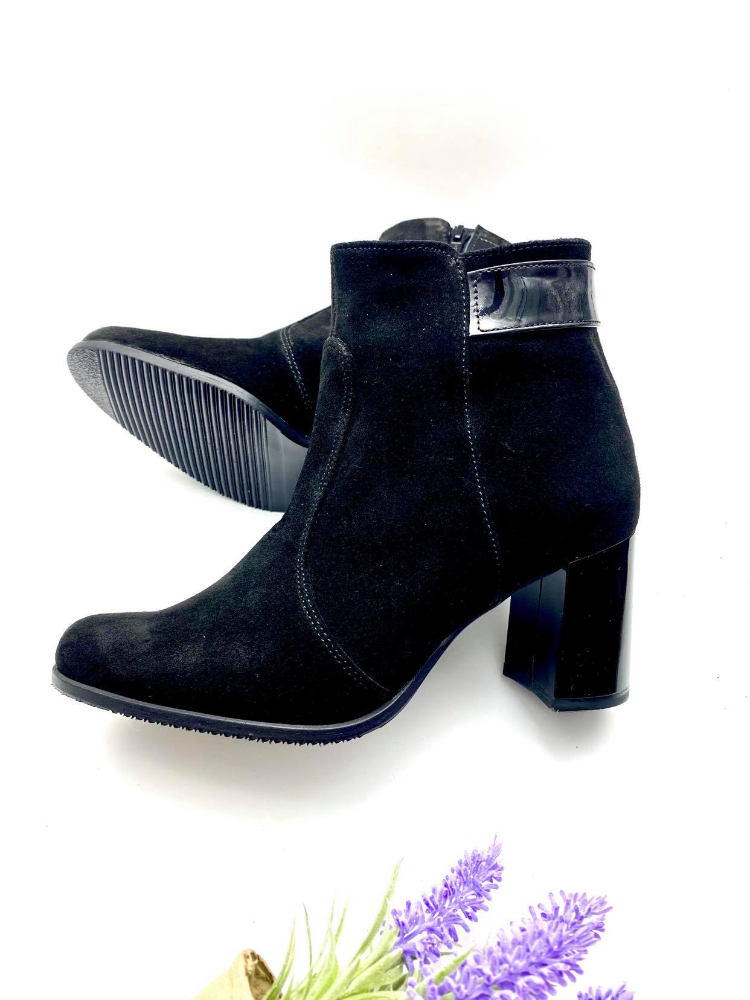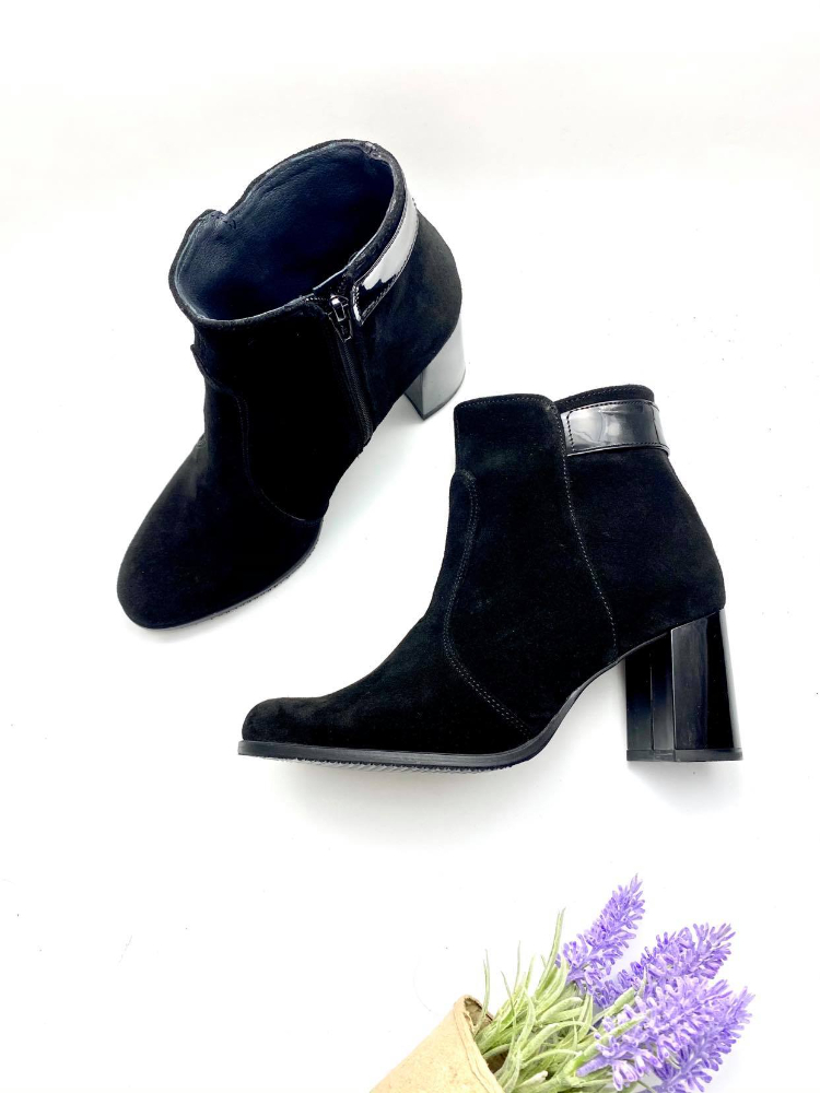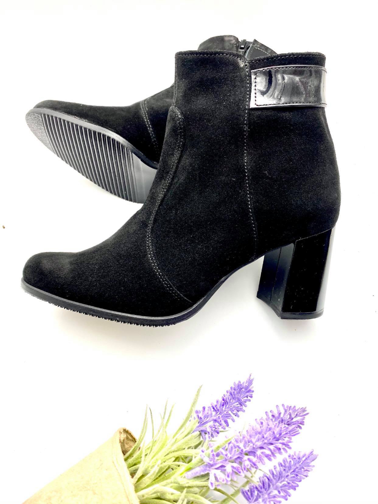 Ghete damă din piele naturală cu talpă medie antiderapantă și cu toc de 7cm super gros evazat și închidere cu fermoar.