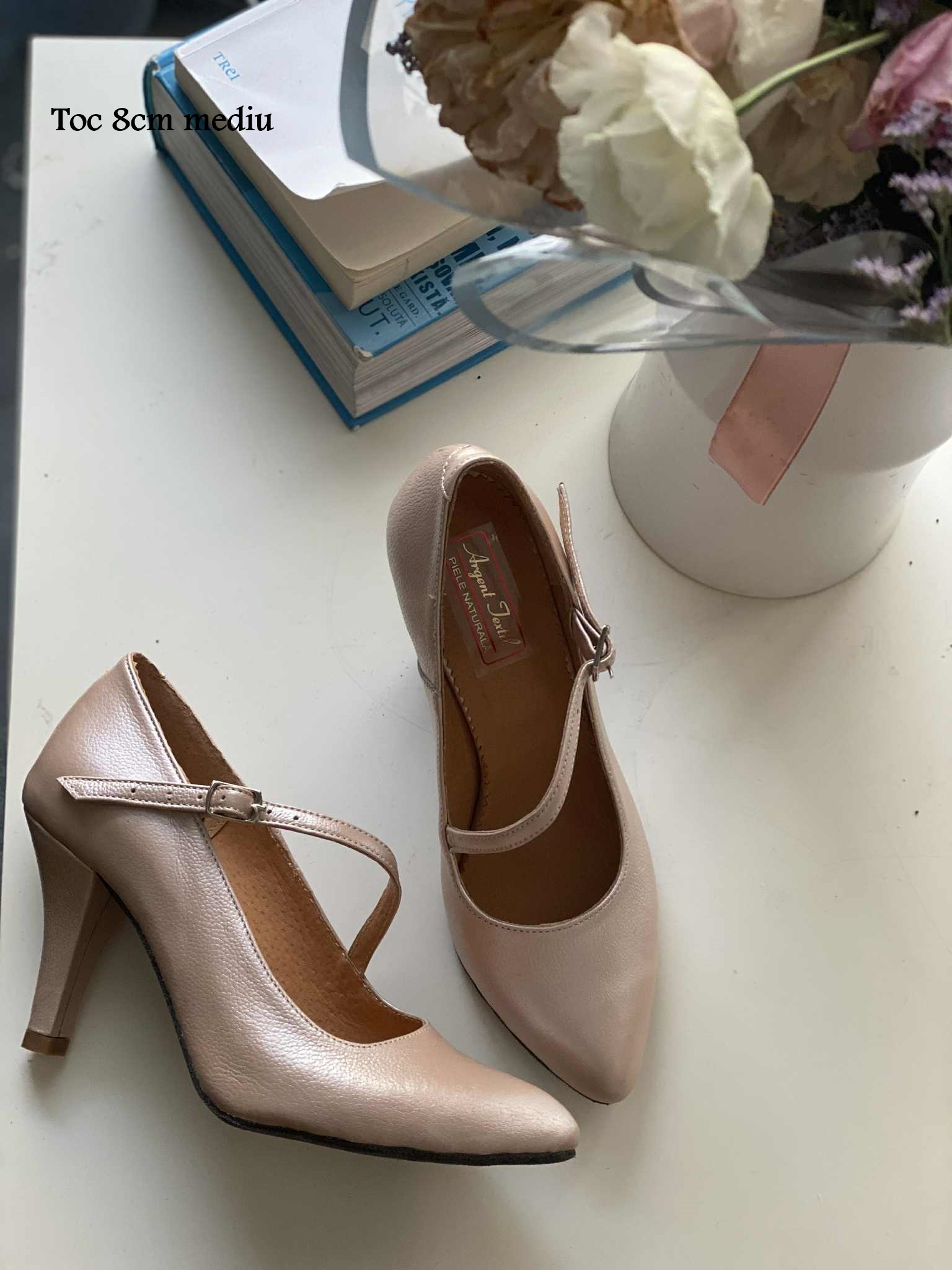 Pantofi pentru dans cu toc de 7cm mediu imbracat si cu talpa construita si finisata manual special pentru dansuri.