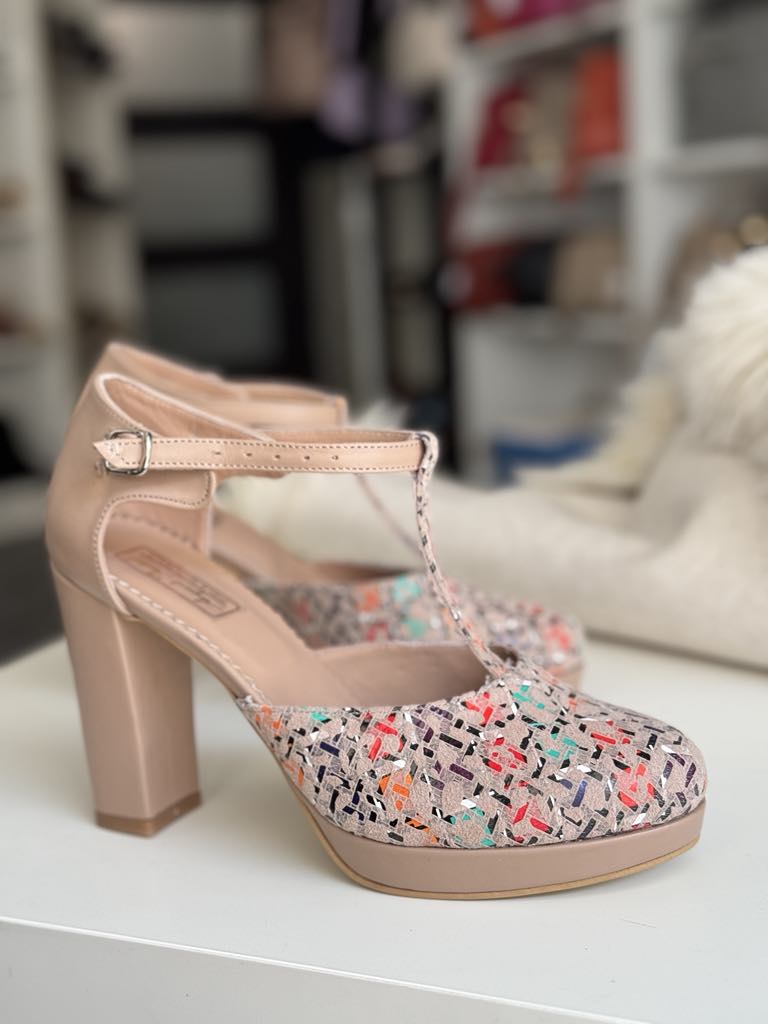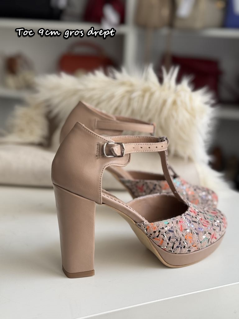 Pantofi cu platou mic de 2 cm,  cu toc de 9cm  imbacat.