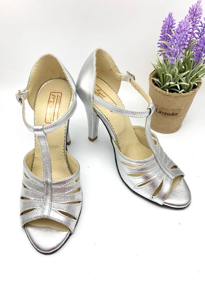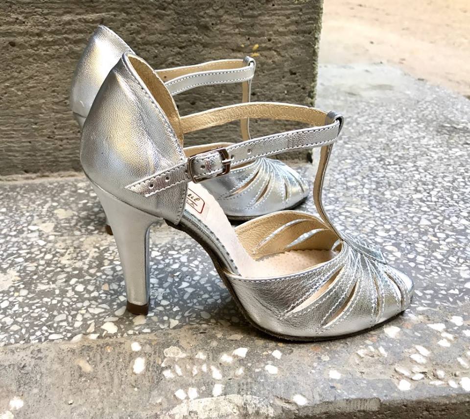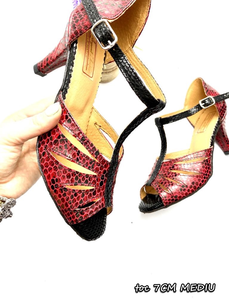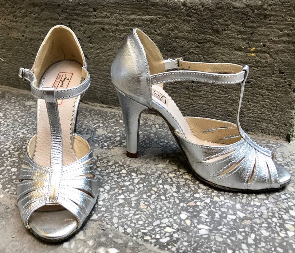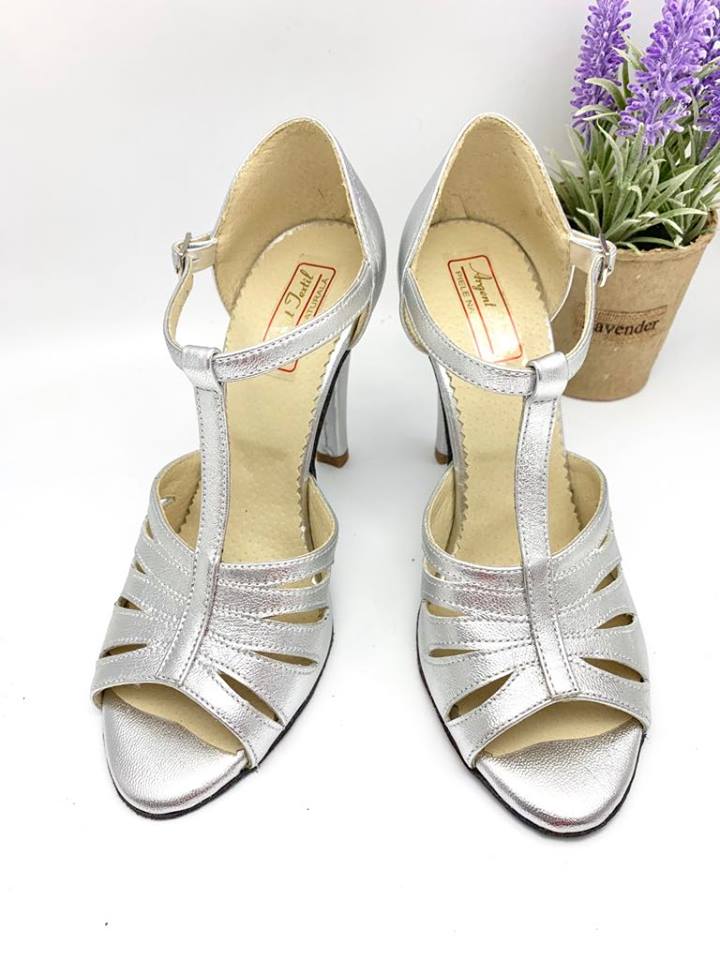Sandale pentru dans cu toc de 9cm mediu imbracat si cu talpa construita si finisata manual special pentru dansuri.