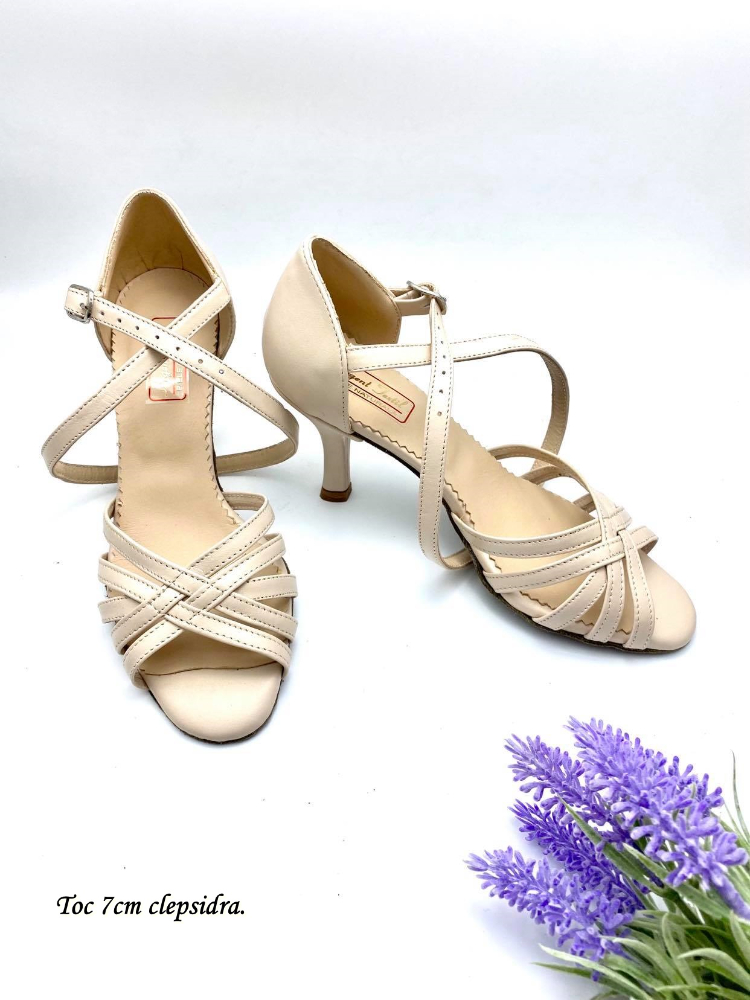 Sandale cu toc de 7cm mediu imbracat si cu talpa construita si finisata manual special pentru dansuri.