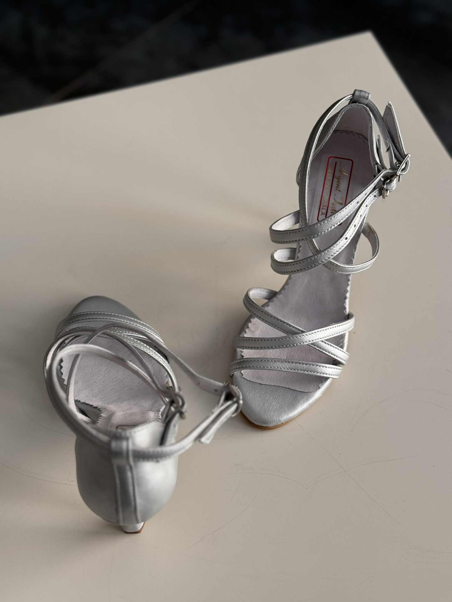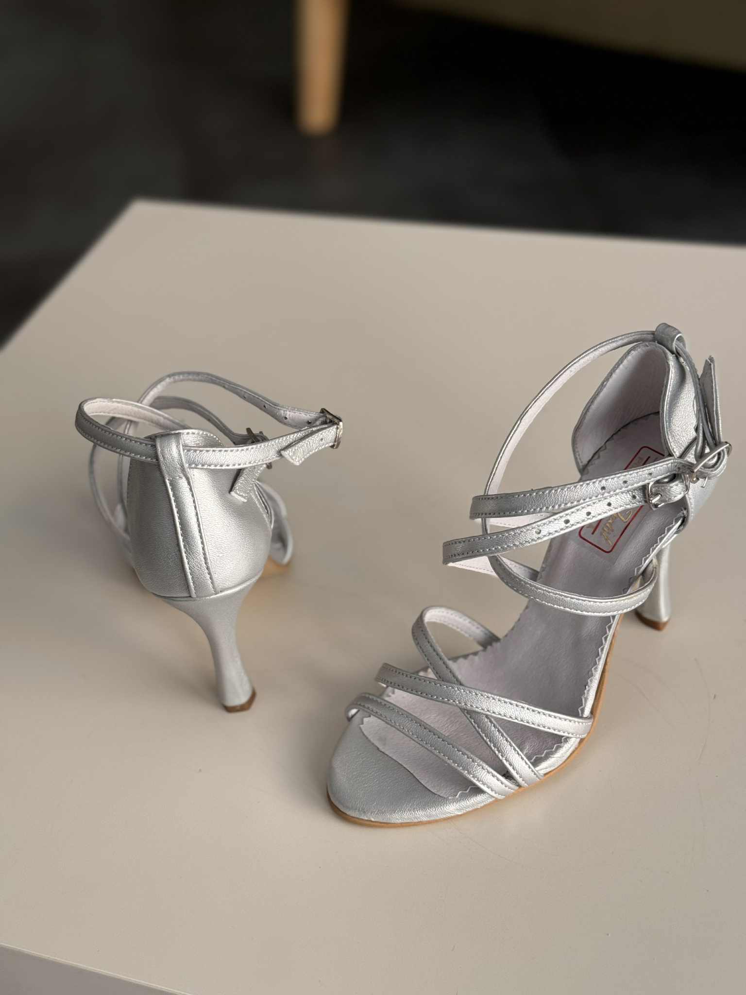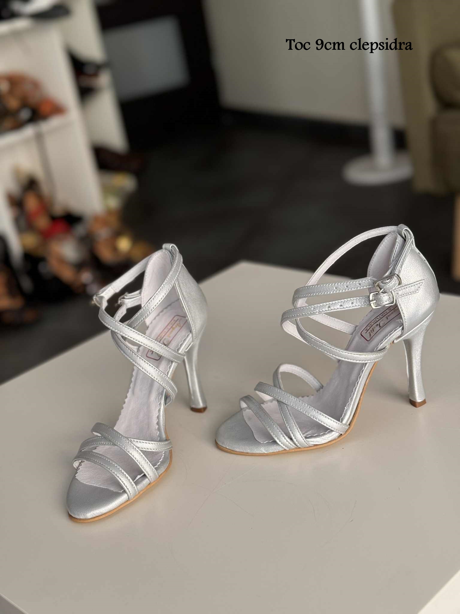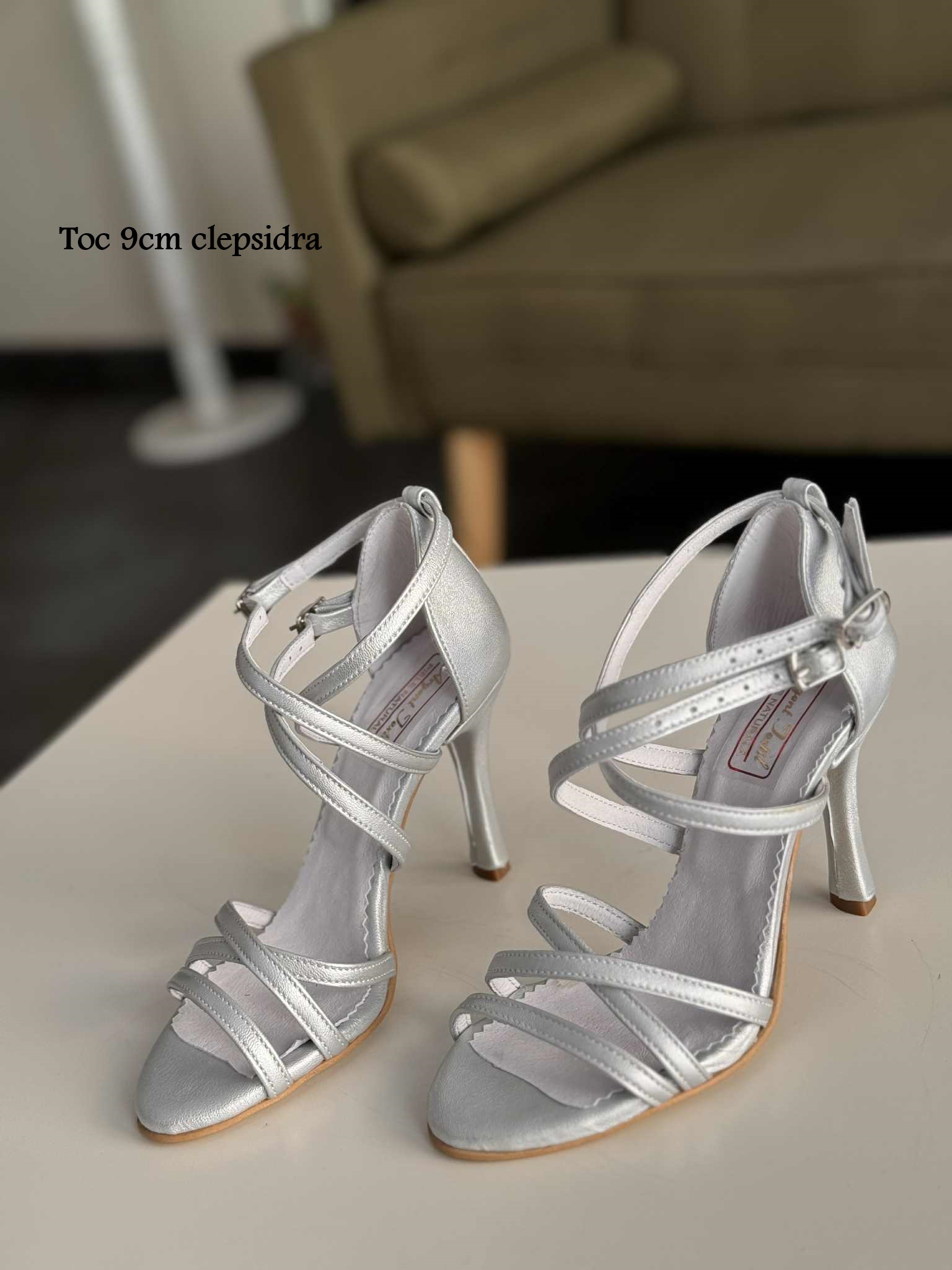 Sandale pentru dans cu toc de 9cm clepsidra imbracat si cu talpa construita si finisata manual.